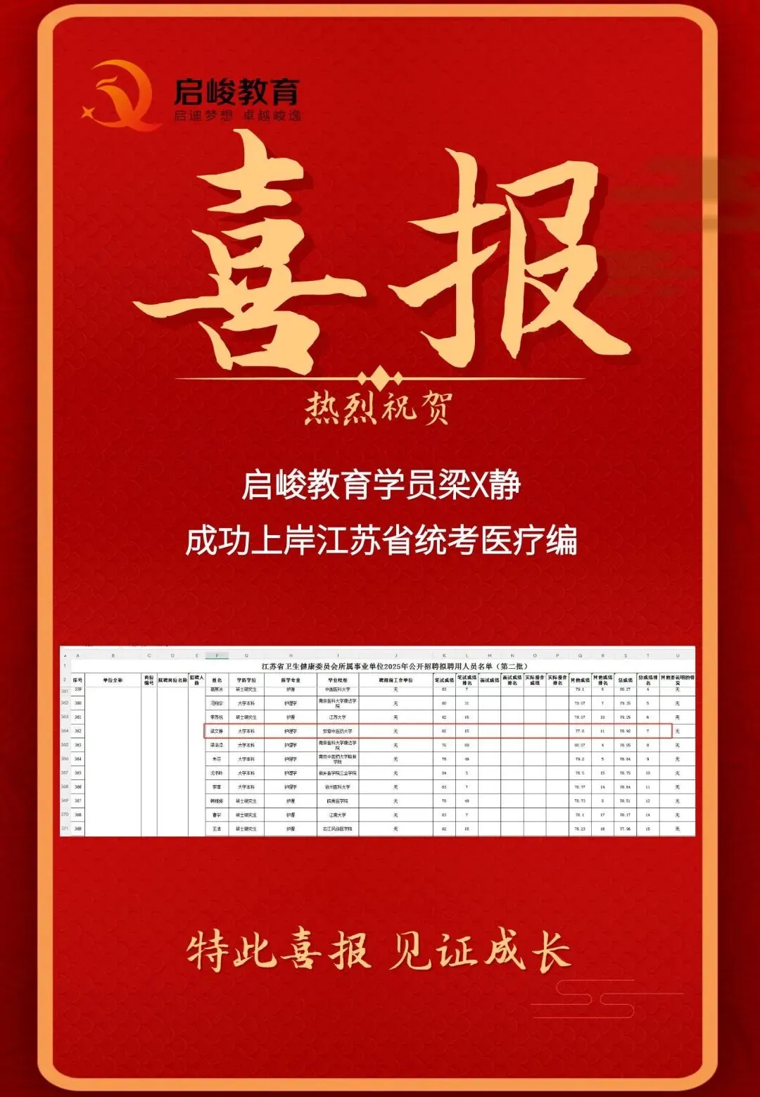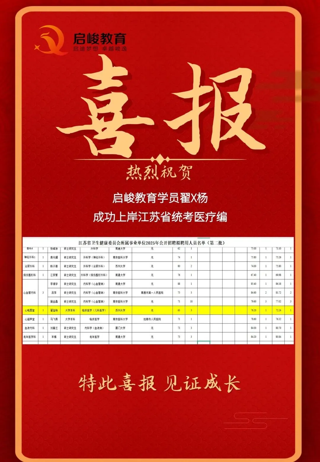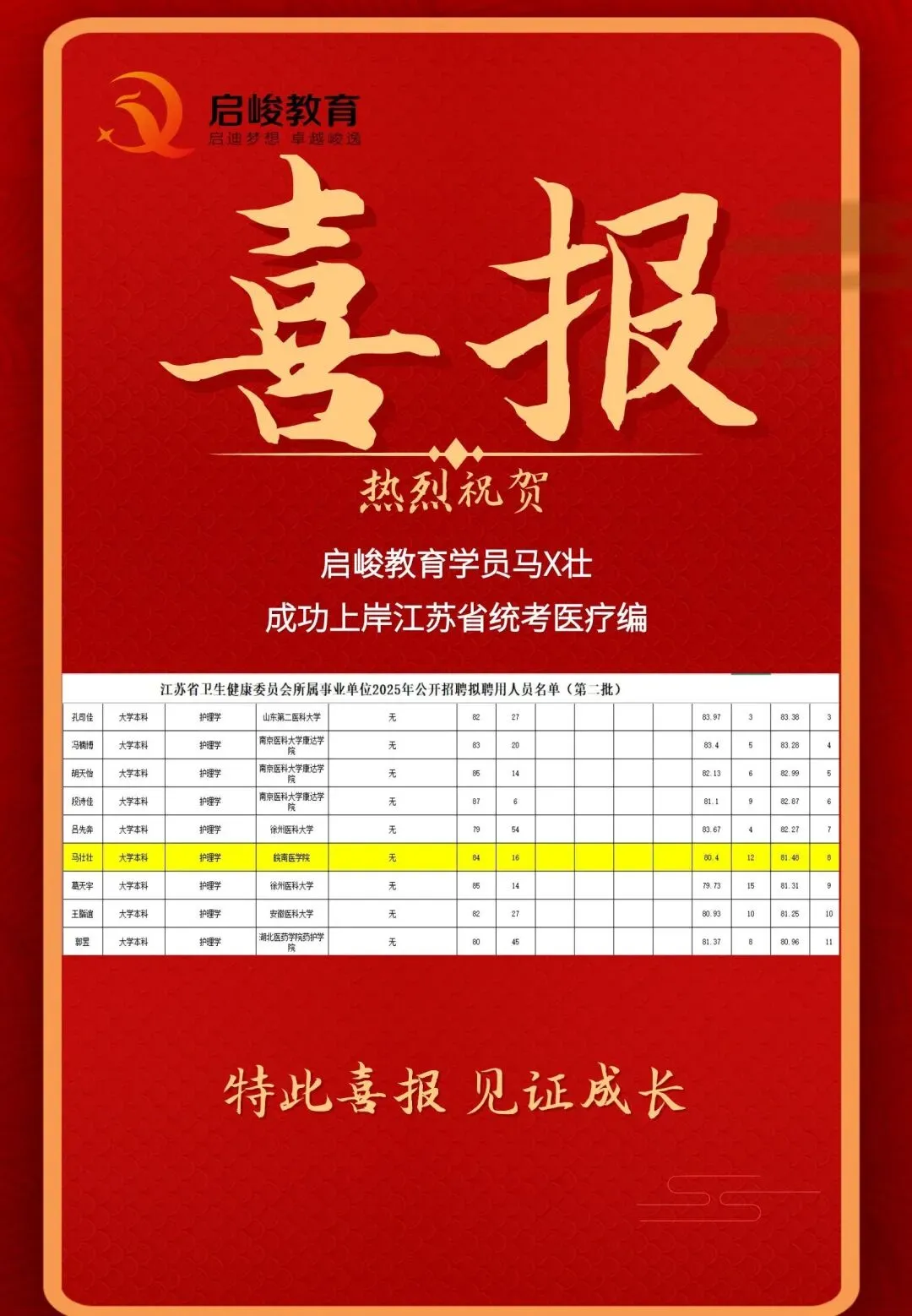 部分上岸喜报