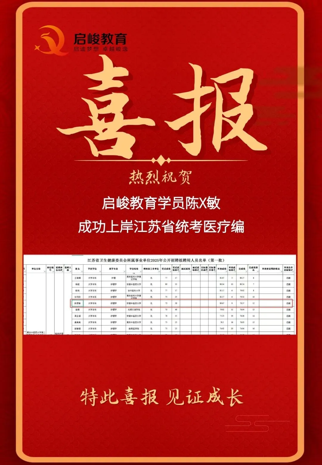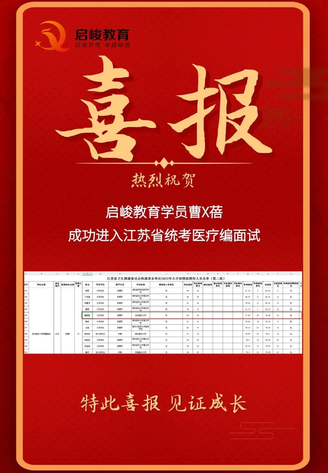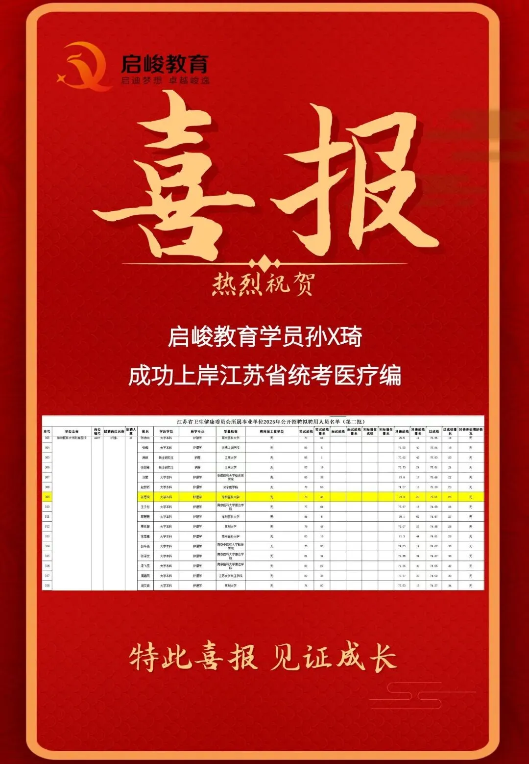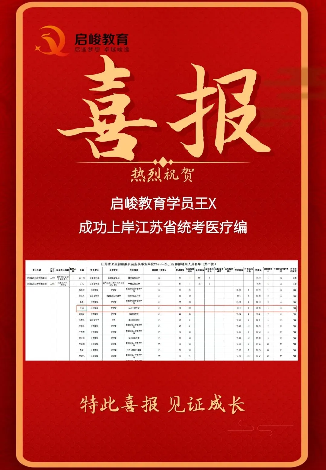 部分上岸喜报