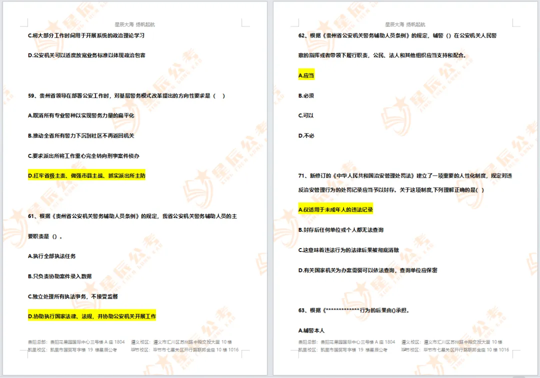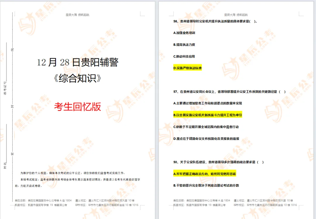 >贵阳第三批辅警笔试答案真题已出,估分对答案!(附真题答案)