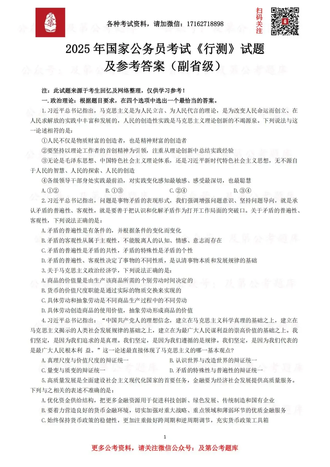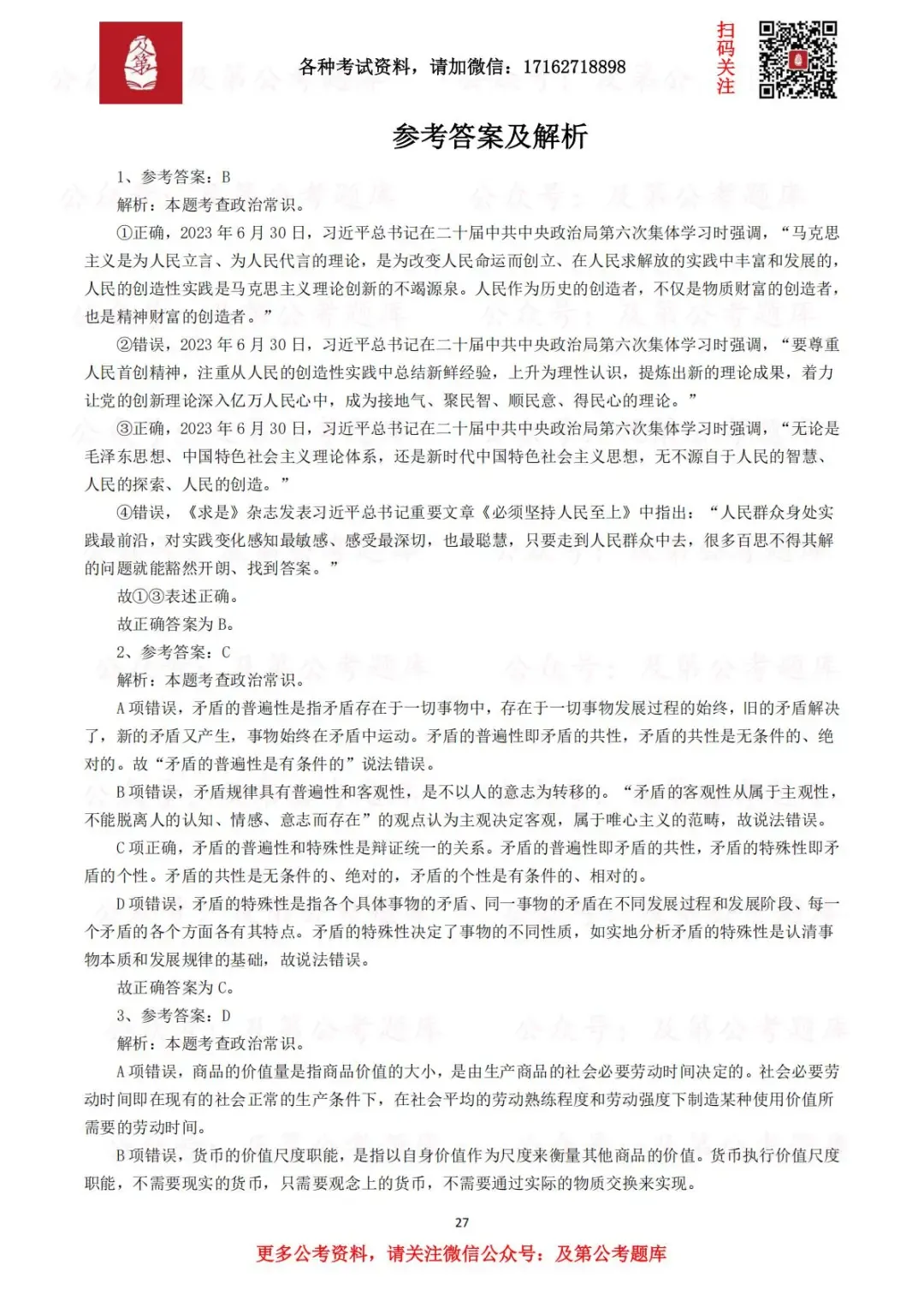 注:已经购买及第会员年卡的考生,直接识别扫码领取(时政会员不含此资料)!