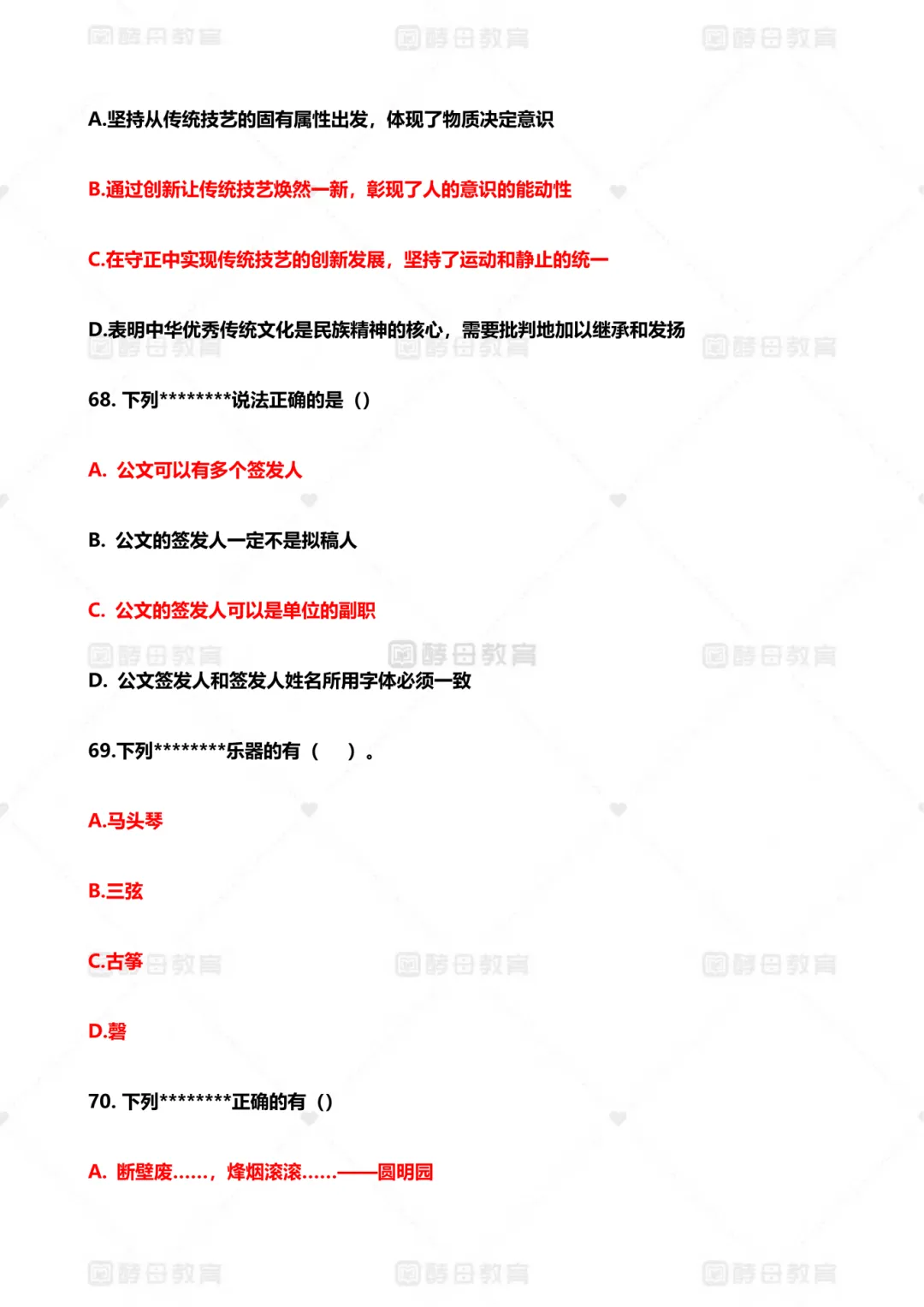 【笔试真题】2025年3月29日事业单位联考《职业能力倾向测验》笔试试题及参考答案(B类)(61—70题)