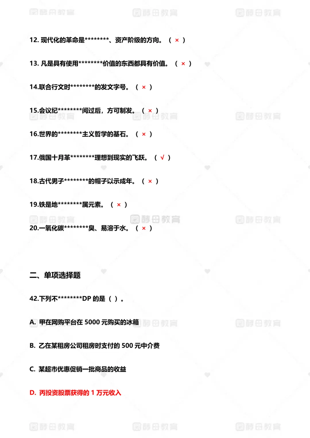 【教师】9.13兴义笔试真题答案!教资真题答案汇总!