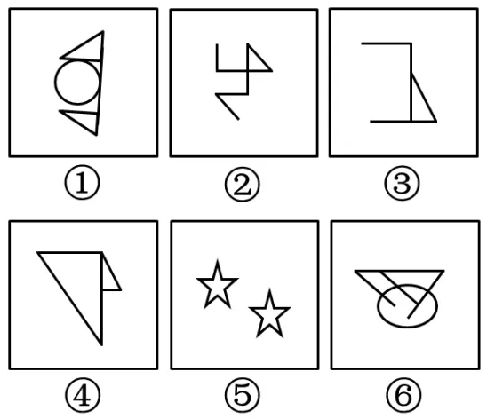 把下面的六个图形分为两类,使每一类图形都有各自的共同特征或规律,分类正确的一项是: