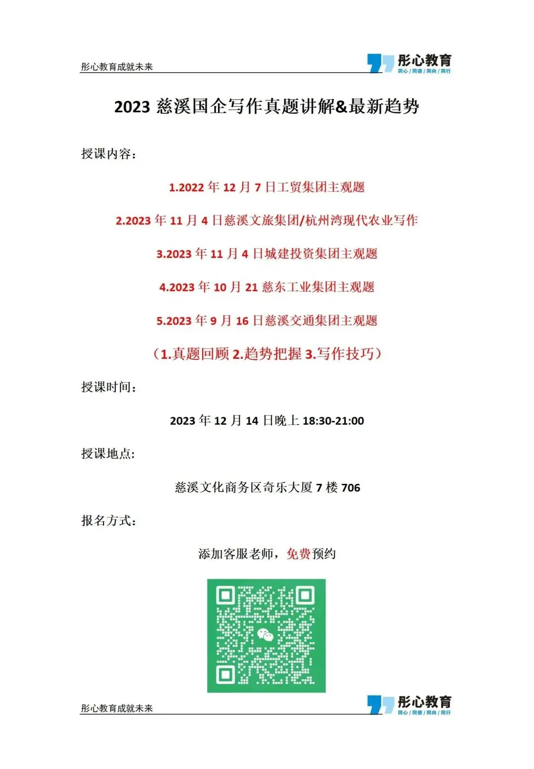 >【免费参加】23年慈溪国企写作真题讲解课程
