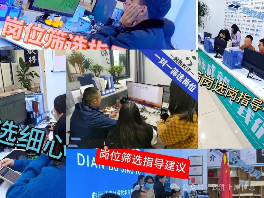 报名选岗,一对一辅导,按照:读公告——筛岗位——网上报名——给建议——报名成功;每个致胜人坚持做,认真做,尽力做。