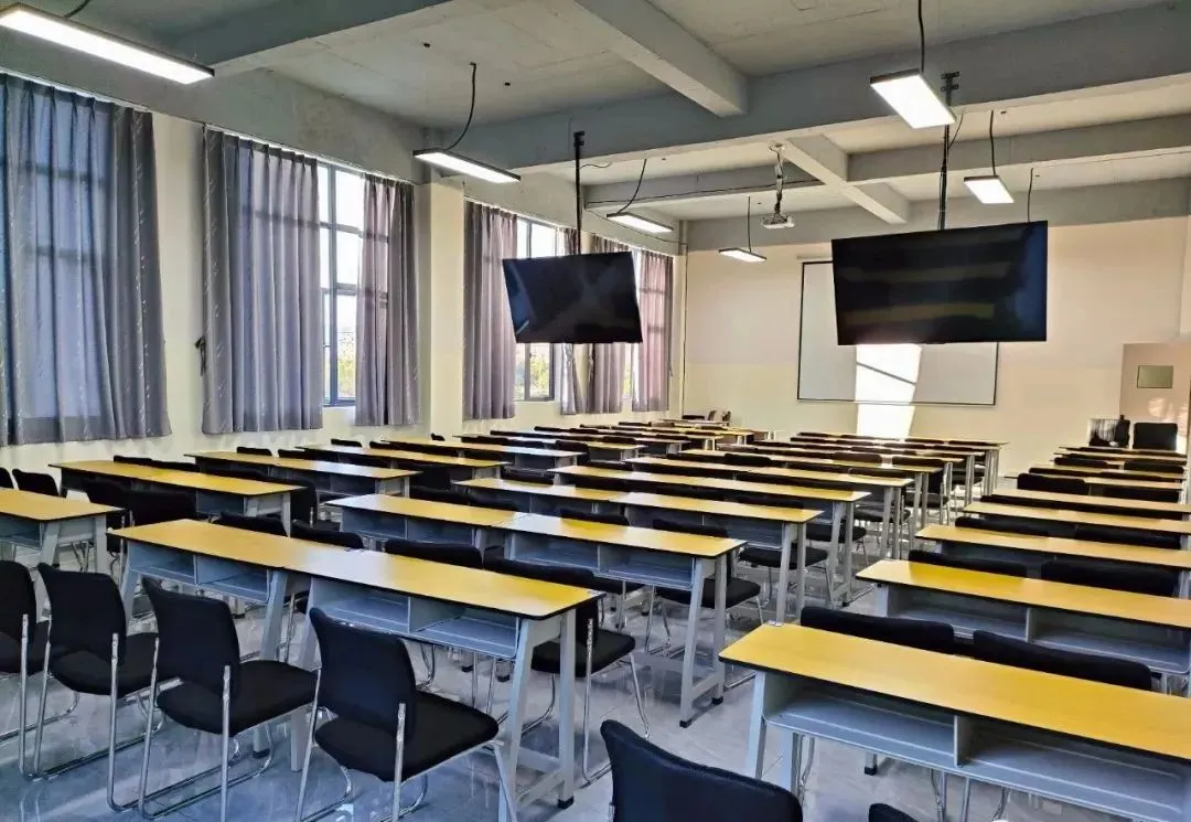 教室配有投影音响空调,每个班80-100人,隔音效果好,干净整洁,好环境好心情。