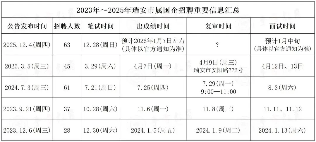 2025年12月瑞安国企·笔试已结束预计1月上旬公布笔试成绩