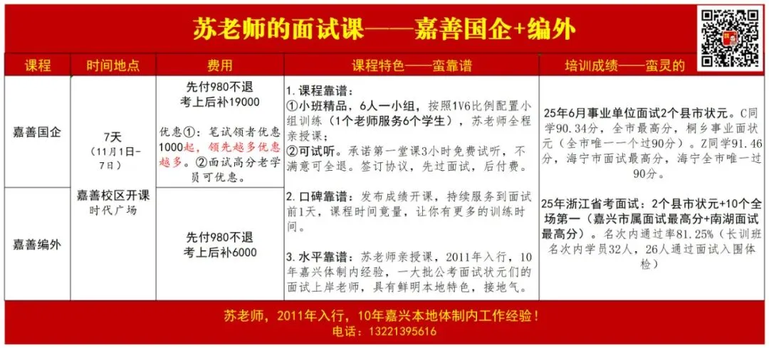 嘉善国企编外面试课【嘉善开课,送真题】