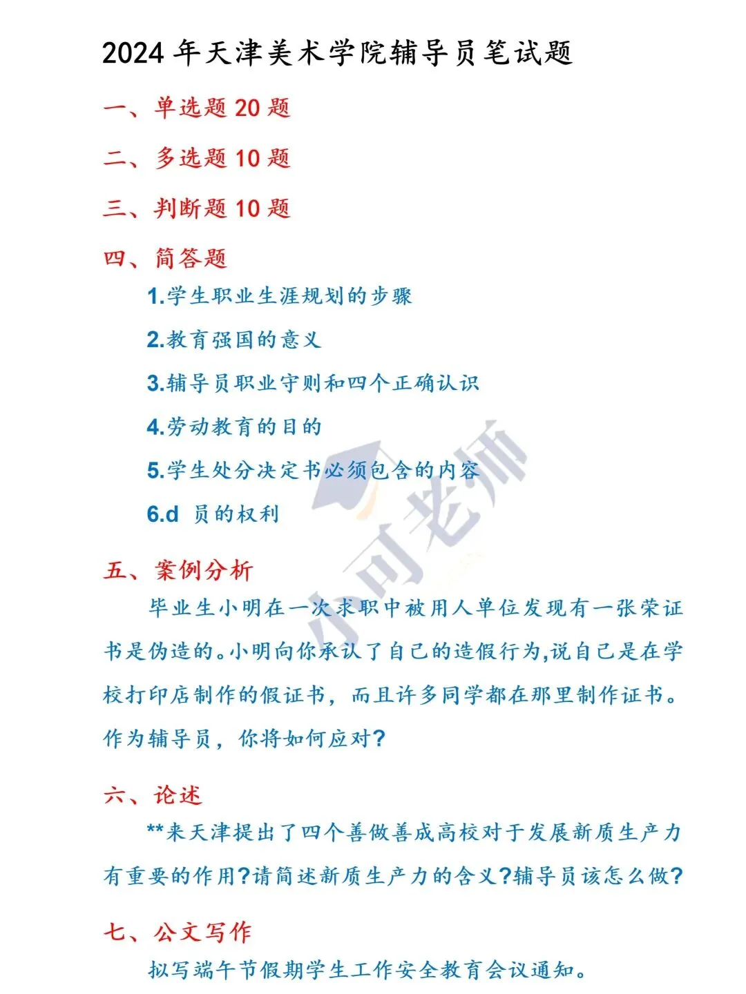 💕笔试题型:单选,多选,判断,简答,案例分析,论述,写作