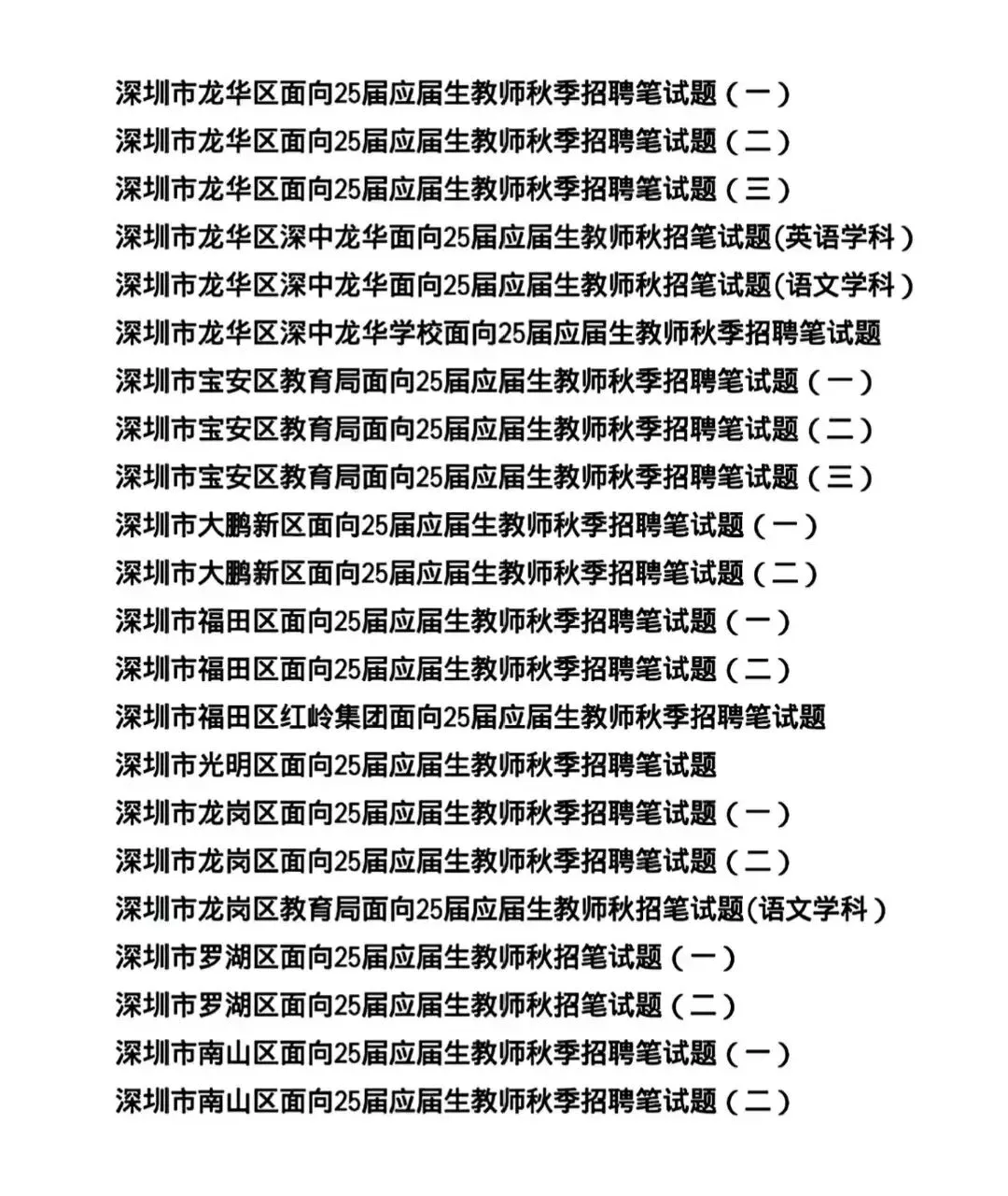 深圳教师招聘历年校招真题(12-2025)
