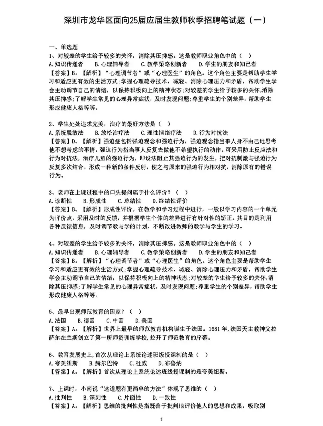 >26深圳校招教师招聘历年真题附答案解析