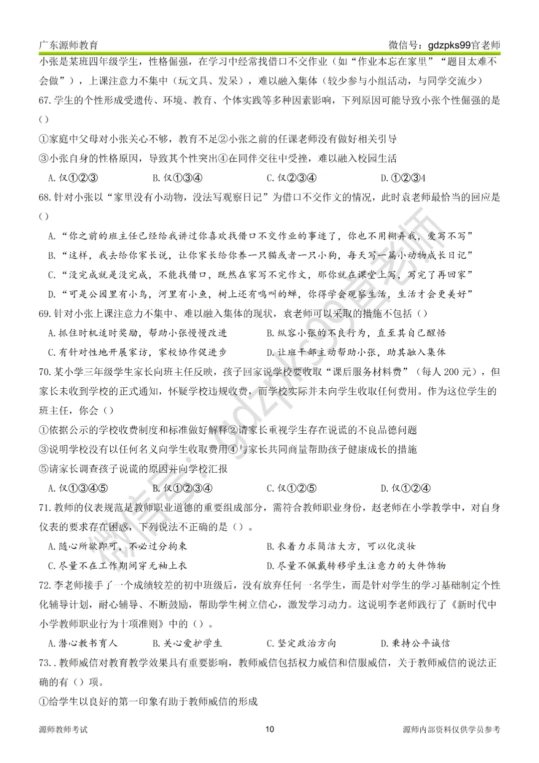 4.古希腊著名教育家苏格拉底提出了名为“产婆术”的教学方法,该方法通过问答引导学生自主思考,下列教学行为中运用了“产婆术”的是()