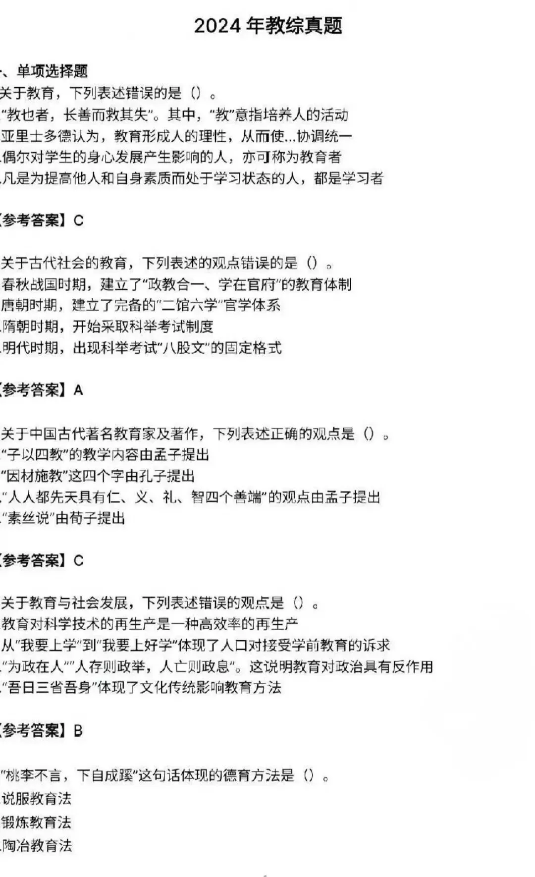江西省教师招聘真题汇总历年教综+学科真题(免费分享)