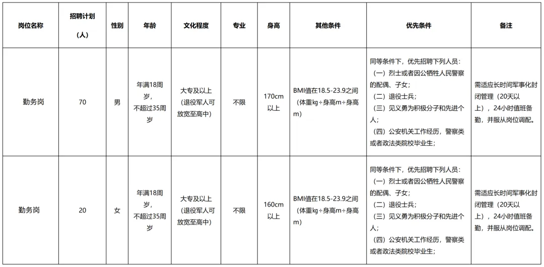 6.能适应留置看护、值班等勤务要求,服从单位安排的任务,服从单位岗位调整安排;