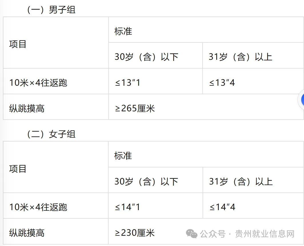 备注:10米×4往返跑每人最多可测2次,1次测评达标即视为该项目测评合格;纵跳摸高每人最多可测3次,1次测试达标即视为该项目测试合格。
