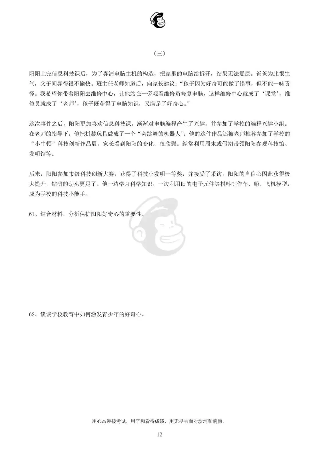 当前位置:首页>招聘真题>2025年3月30日安徽省中学教师招聘真题