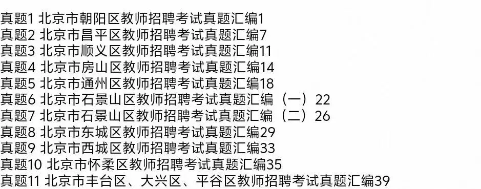 北京朝阳区真题、密云区真题、昌平区、东城区、西城区、房山区、怀柔区、通州区、石景山区、平谷区、海淀区、大兴区等地区教师招聘编制真题及答案