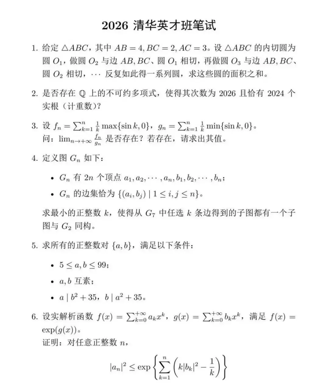 同学反馈2026年清华丘成桐数学英才班预计今日可查询结果,首先恭喜各位进面的同学。