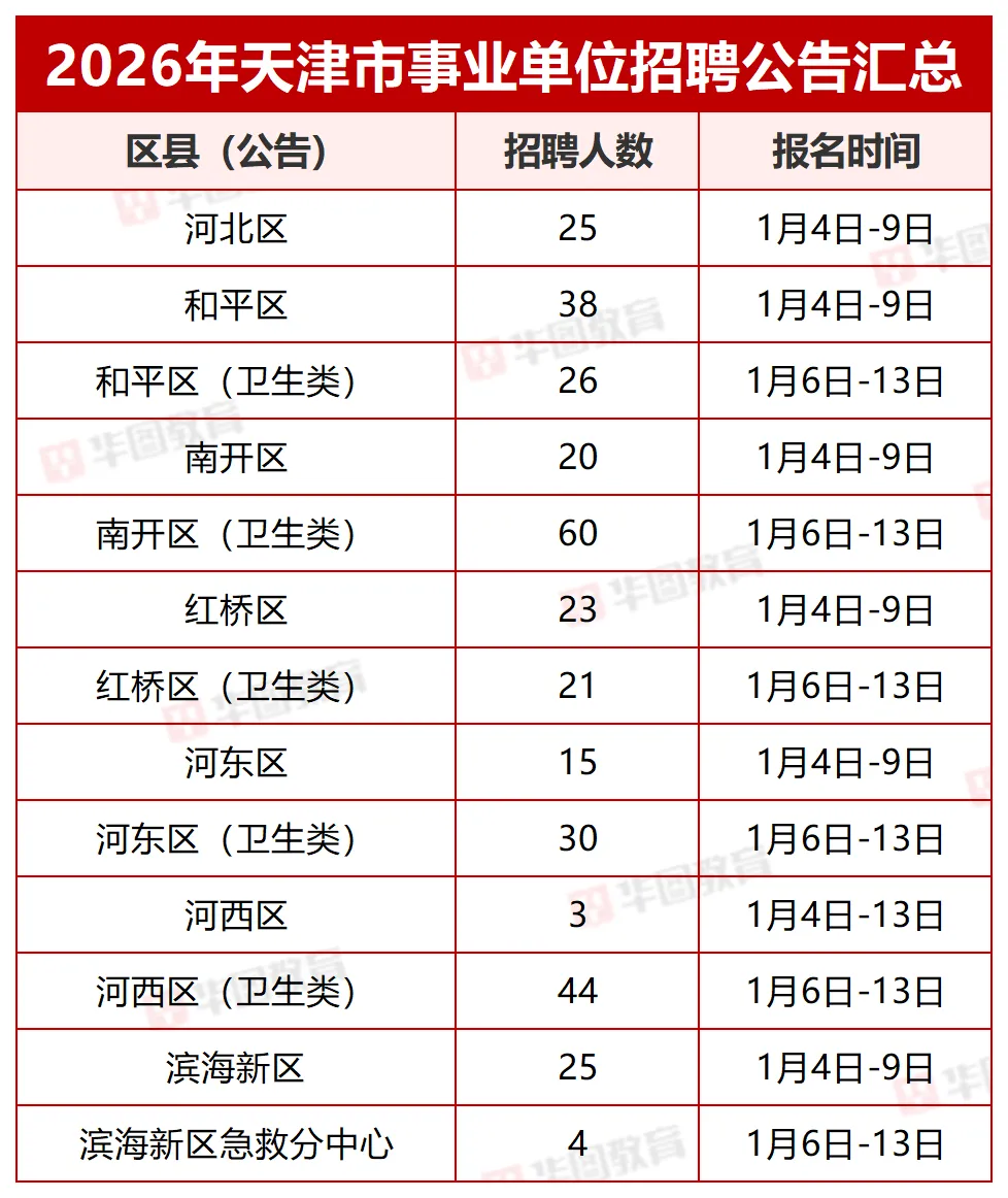 2026天津河北区部分事业单位招聘25人公告