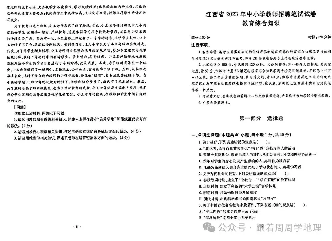 当前位置:首页>招聘真题>速速领!江西教师招聘考试历年教综真题!(14-24)——免费,可下载打印