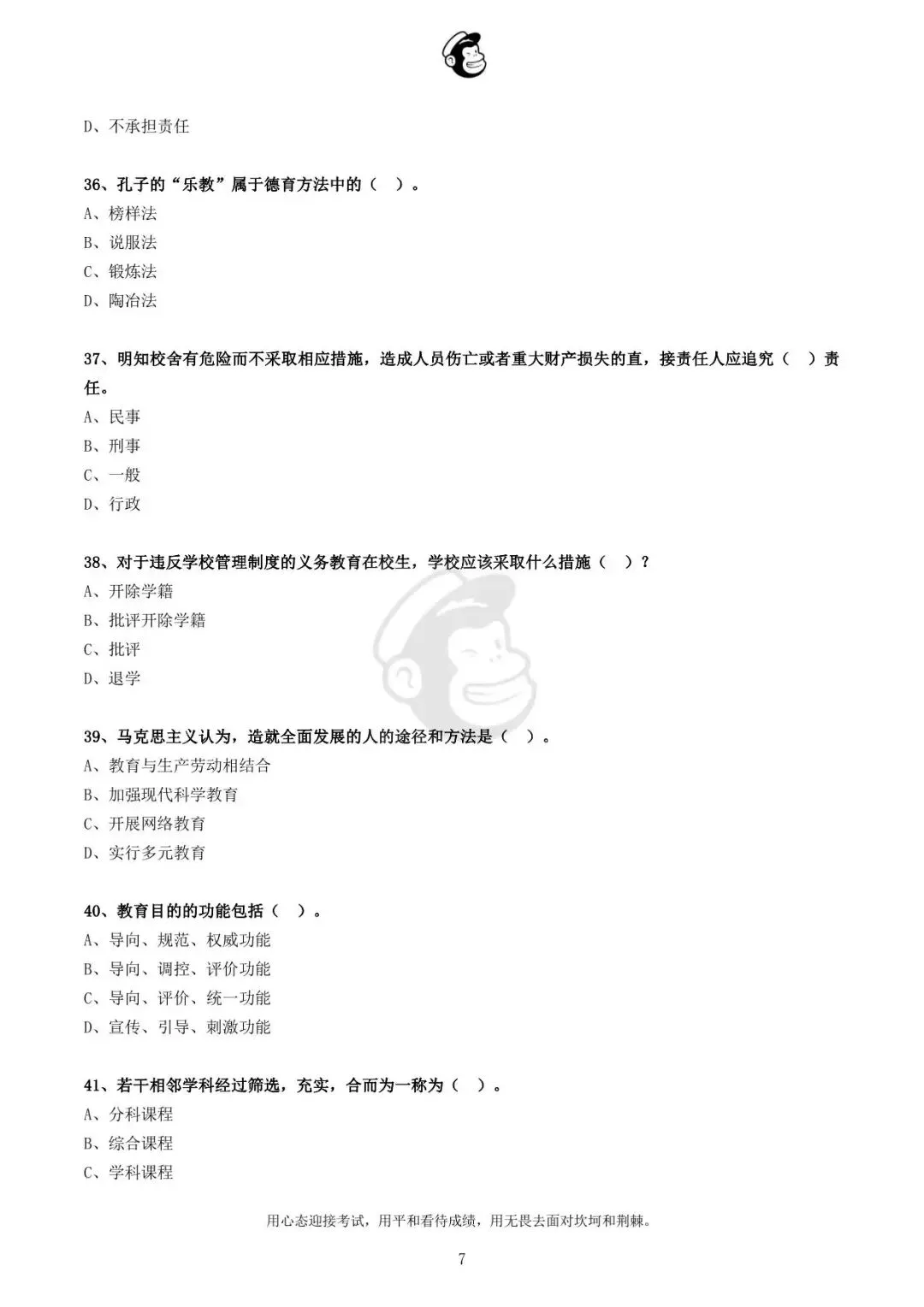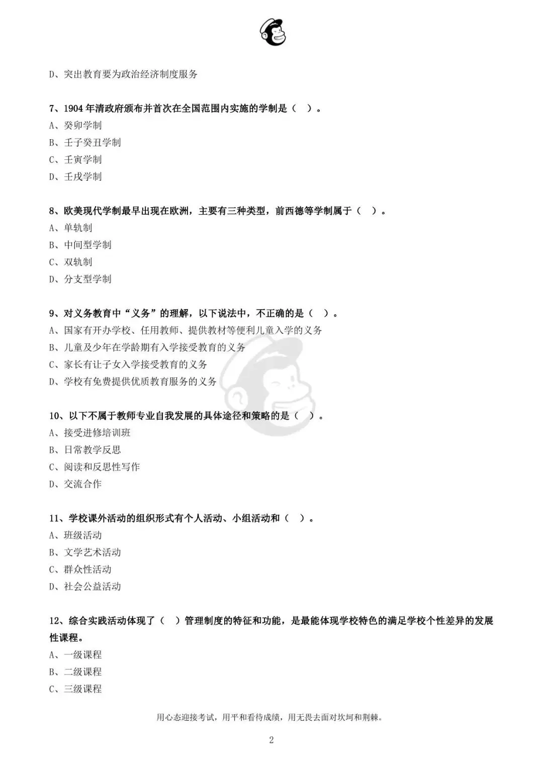 “考”与“试”是意义相近的两个概念,皆有考查、检测、考核等多重含义。将“考”与“试”二字连用,始于西汉董仲舒的《春秋繁露》,该书《考功名篇》说:“考试之法,大者缓,小者急;贵者舒,而贱者促。诸侯月试其国,州伯时试其部,四试而一考。天子岁天下,三试而一考。前后三考而黜陟,命之曰计。”由此可见,最初“考”字更侧重于考核政绩的含义,“试”字更侧重于测度优劣的含义。当“考”与“试”合为一个词之后,其内涵逐渐演变为特指考查知识或技能的方法和制度。(查看更多真题内容下滑到最下方合集)