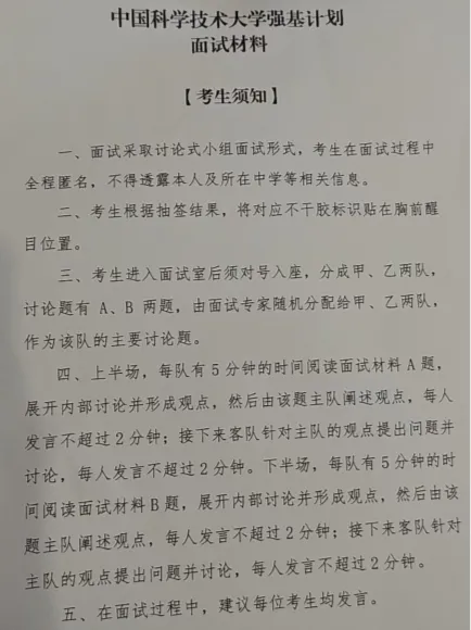 ✅中科大强基面试考情:(以下来自于考生分享)