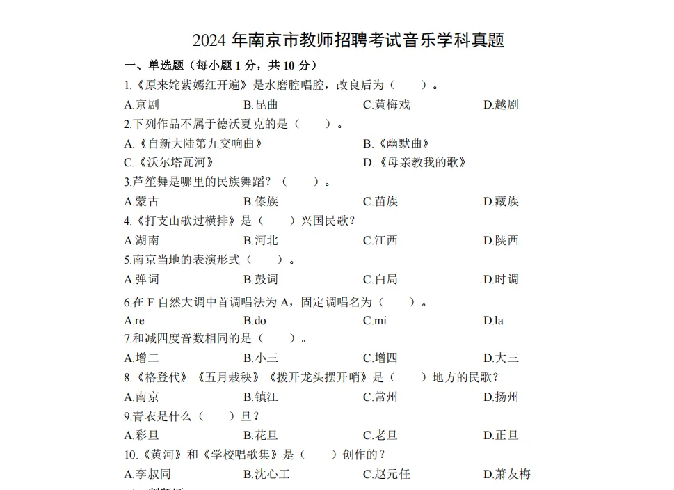 1.南京教师招聘音乐考试题型