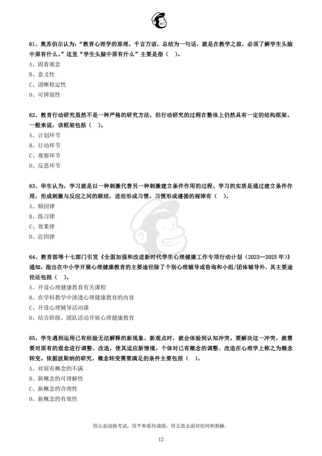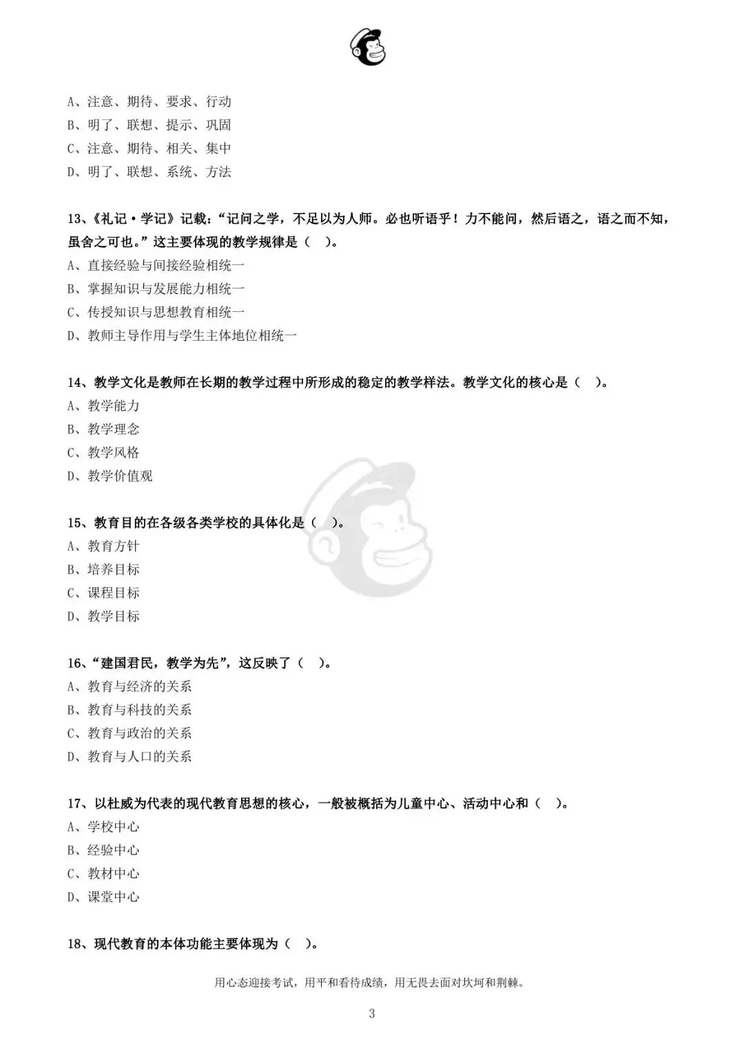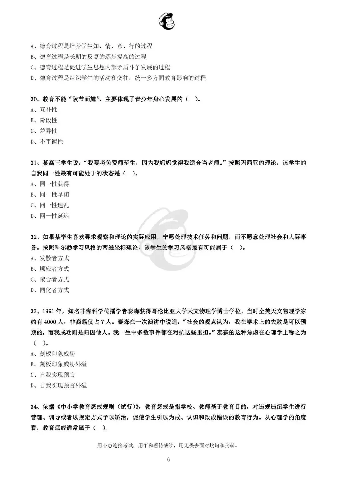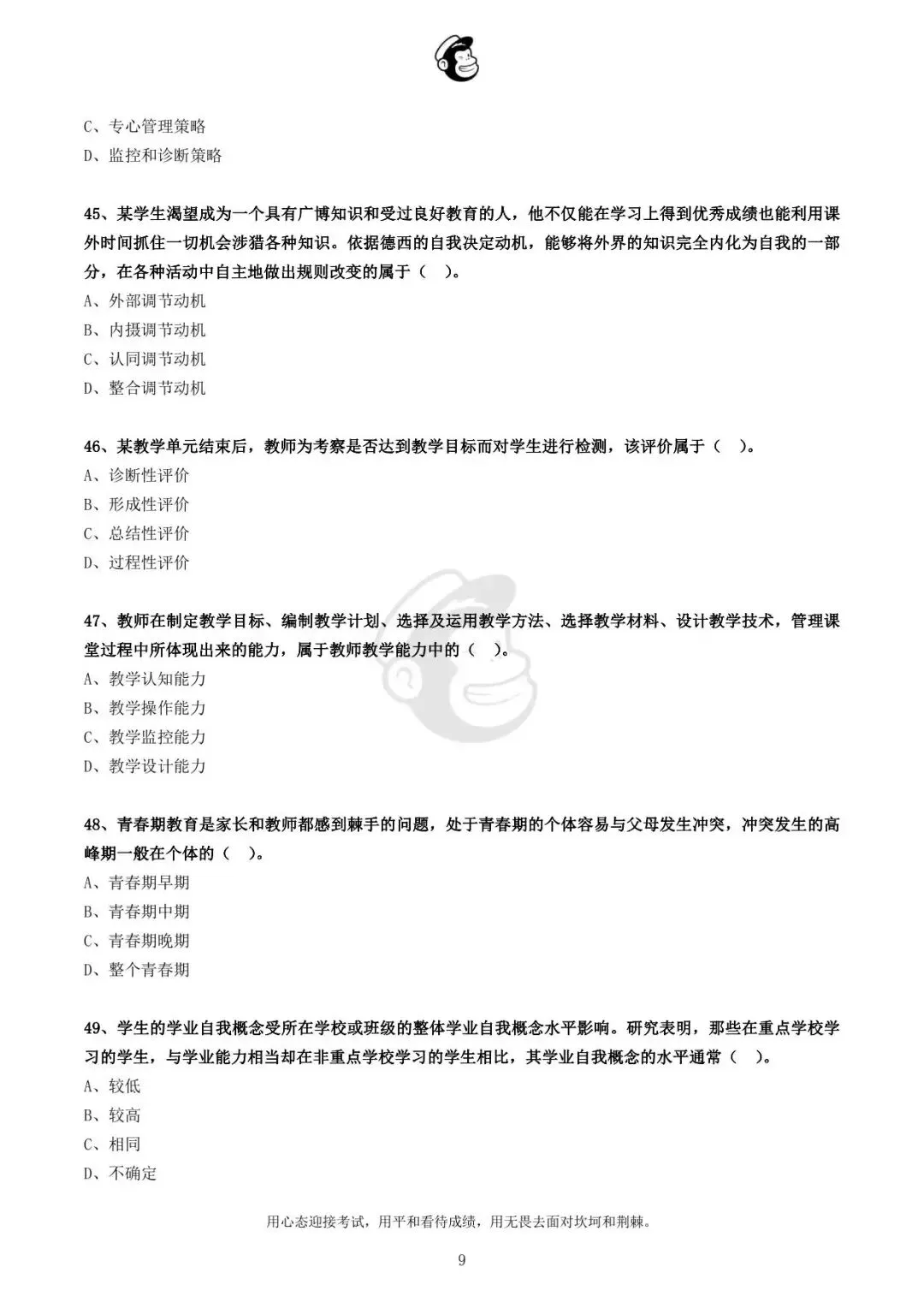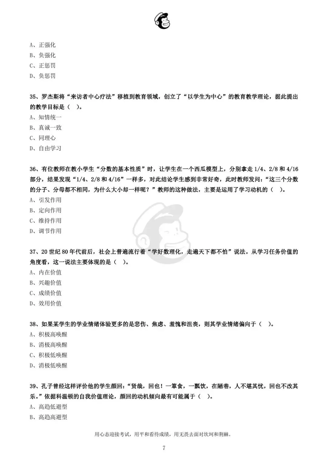 用心态迎接考试,用平和看待成绩,用无畏去面对坎坷和荆棘。
