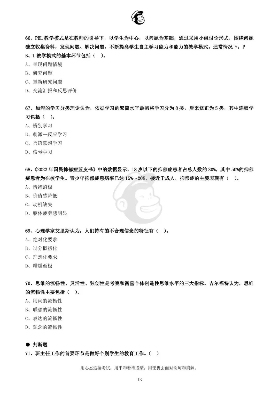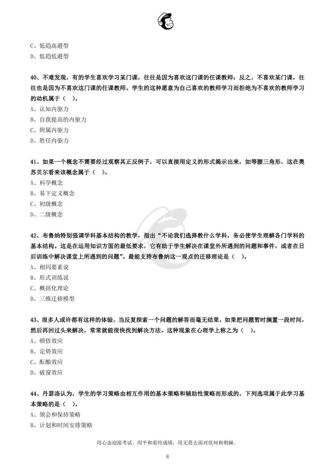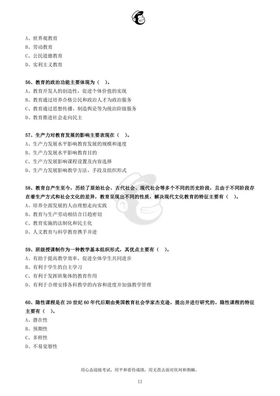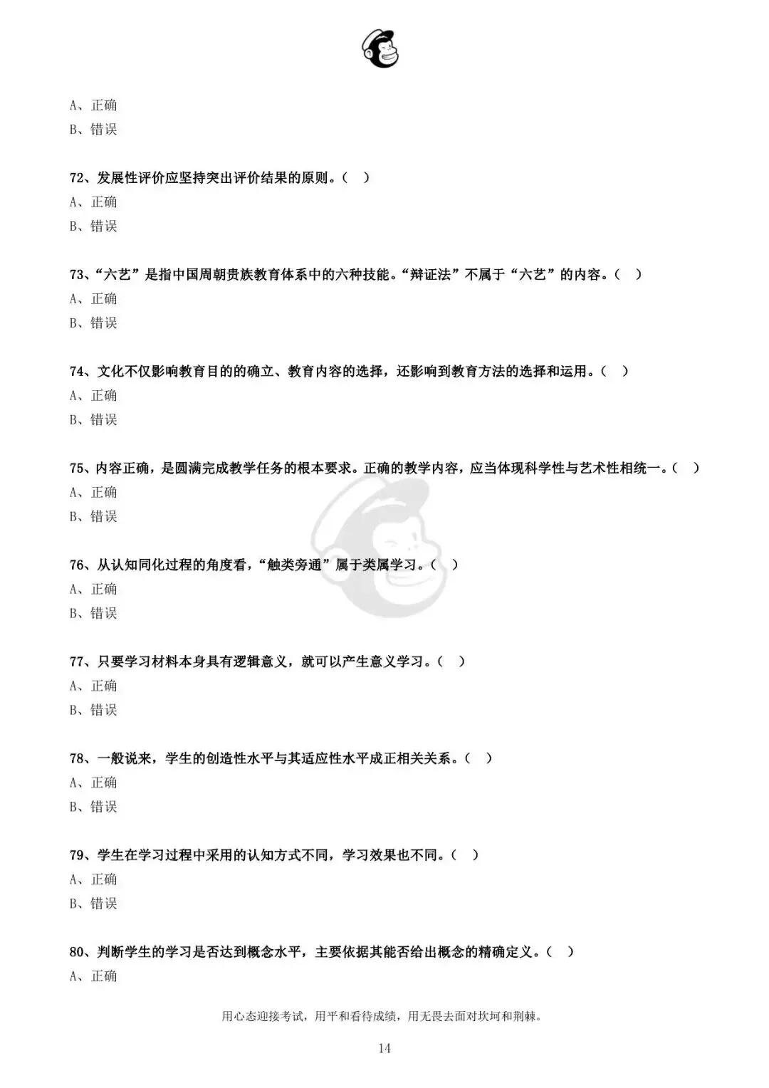 用心态迎接考试,用平和看待成绩,用无畏去面对坎坷和荆棘。