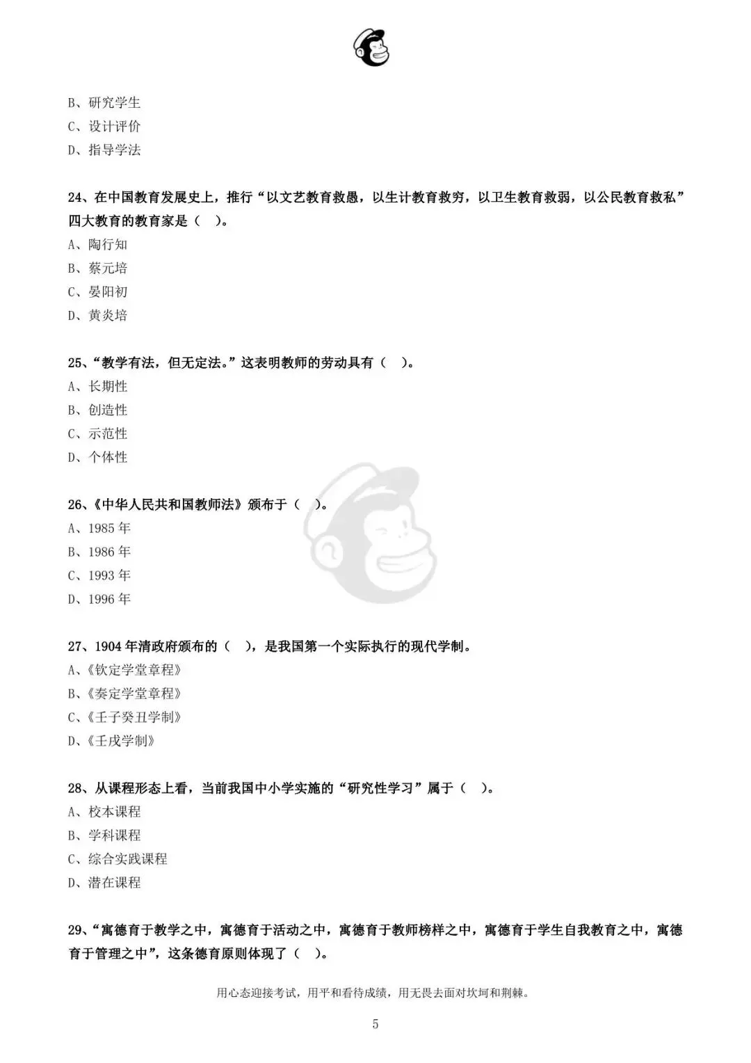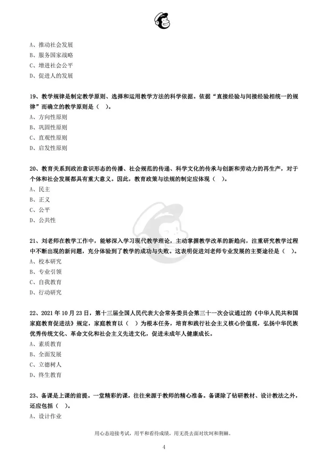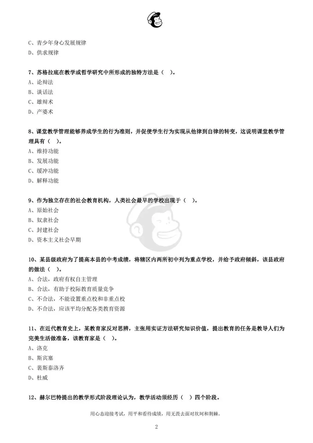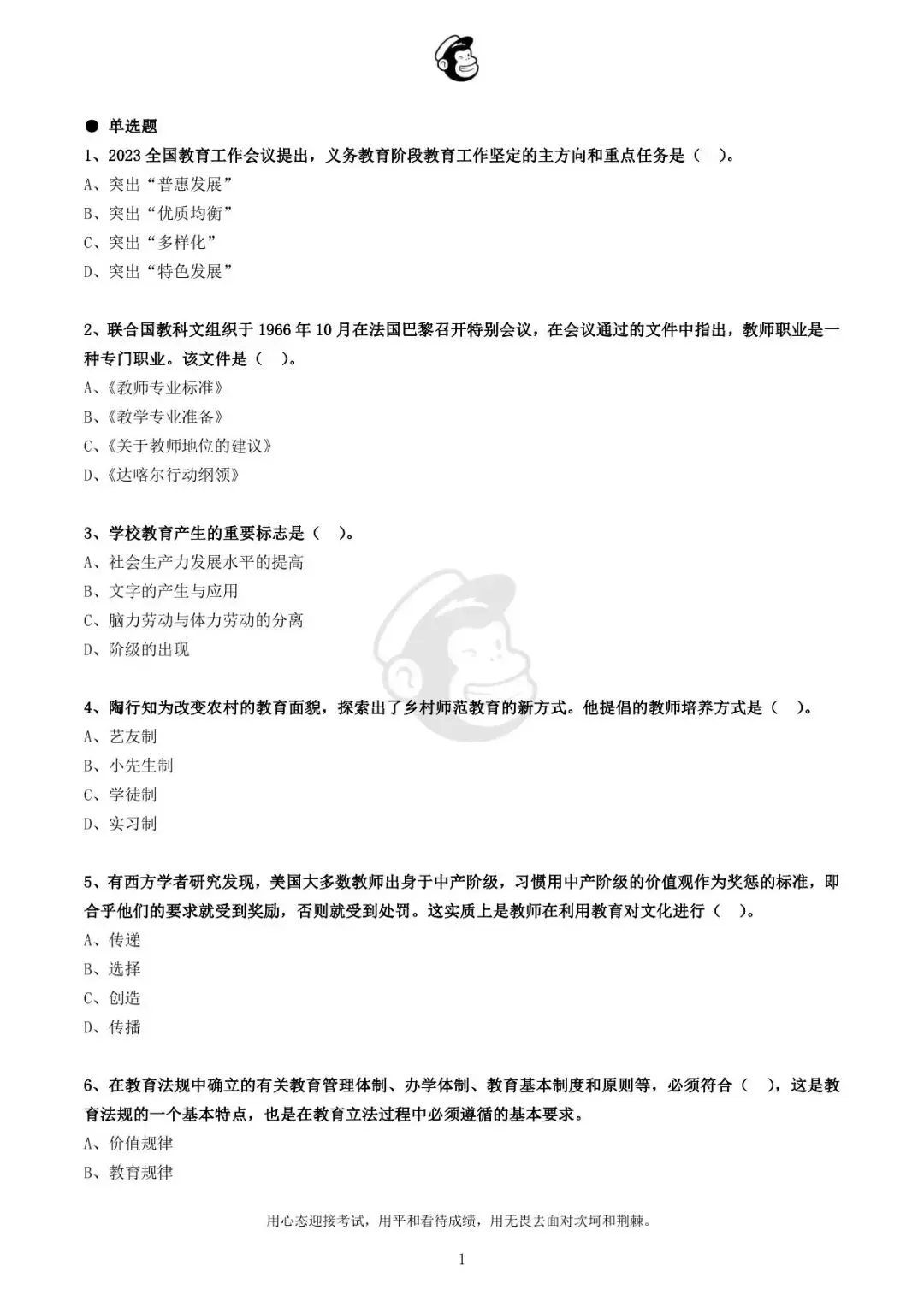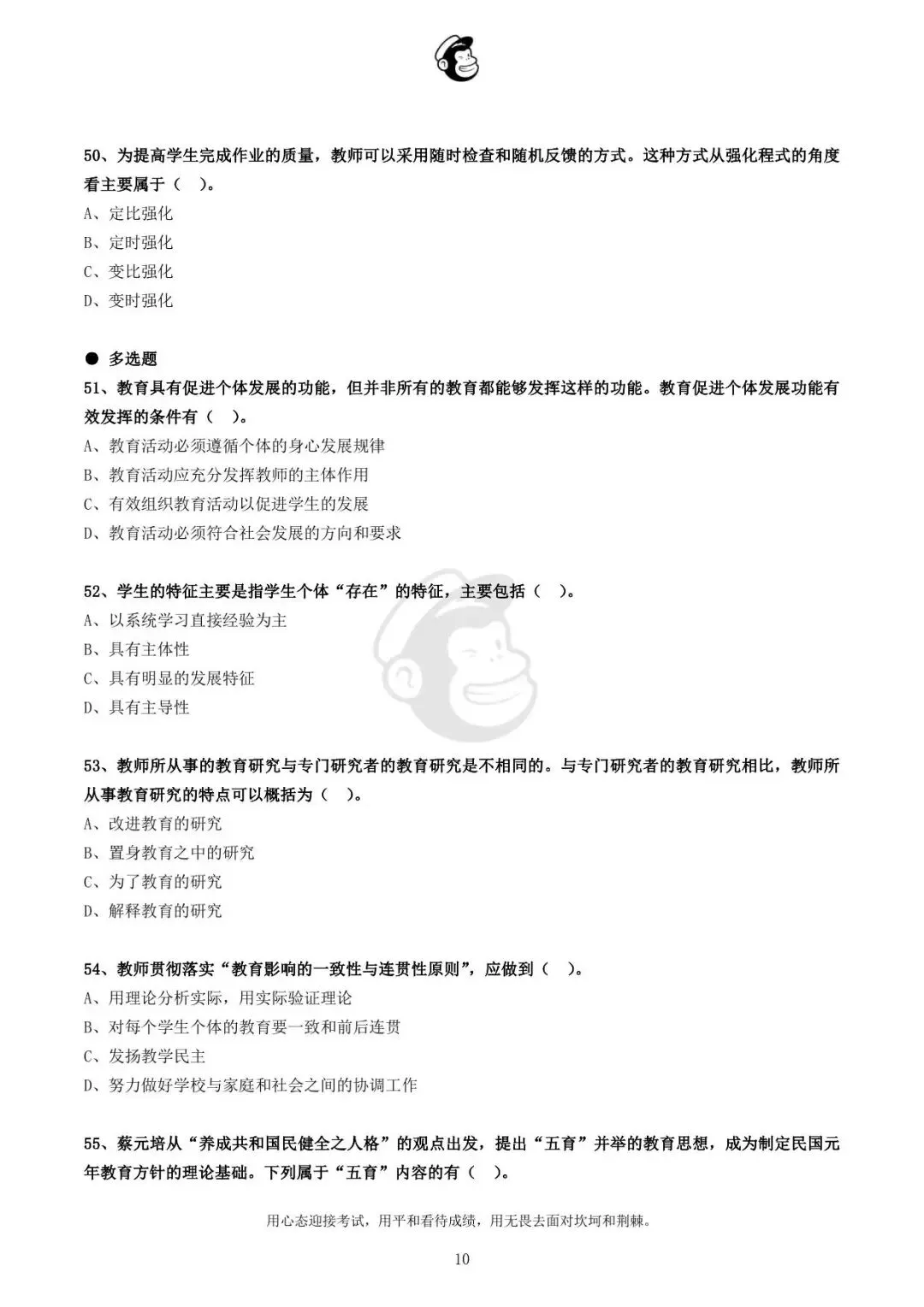 用心态迎接考试,用平和看待成绩,用无畏去面对坎坷和荆棘。