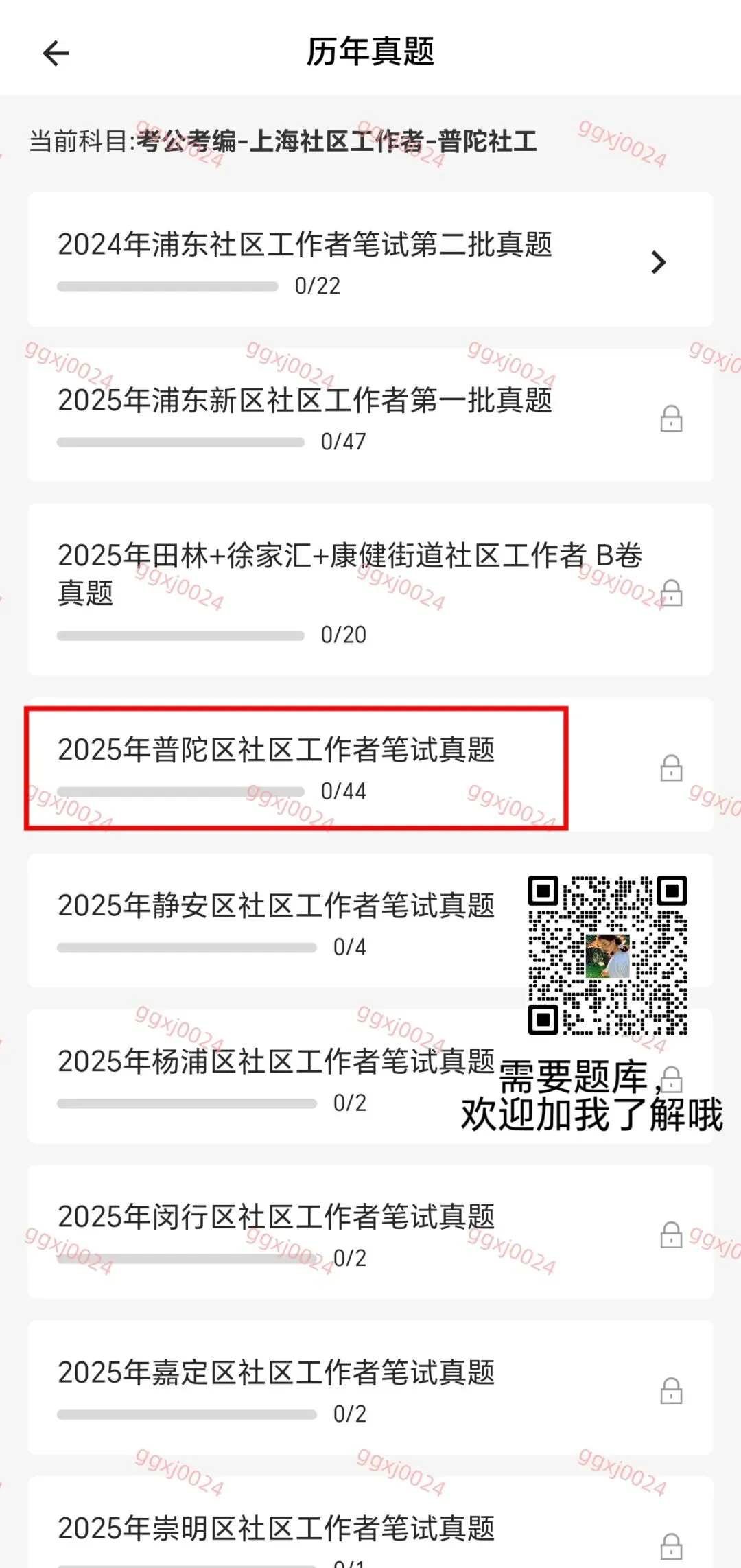 包括普陀区社区工作者历年真题、主观题、模拟卷、政策文件、社区知识、公基常识
