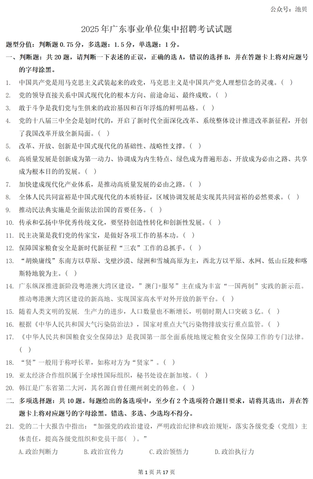 2025广东事业单位统考真题解析PDF版分别17和34页,比较多,就没有全放,需要的关后回【事业编】拿PDF版就行。
