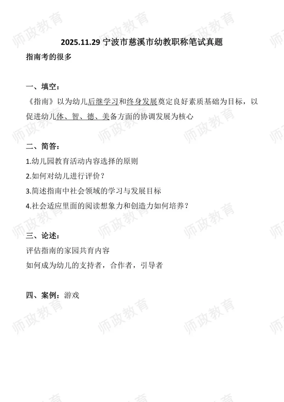 2025.11.29宁波市慈溪市幼教职称笔试真题