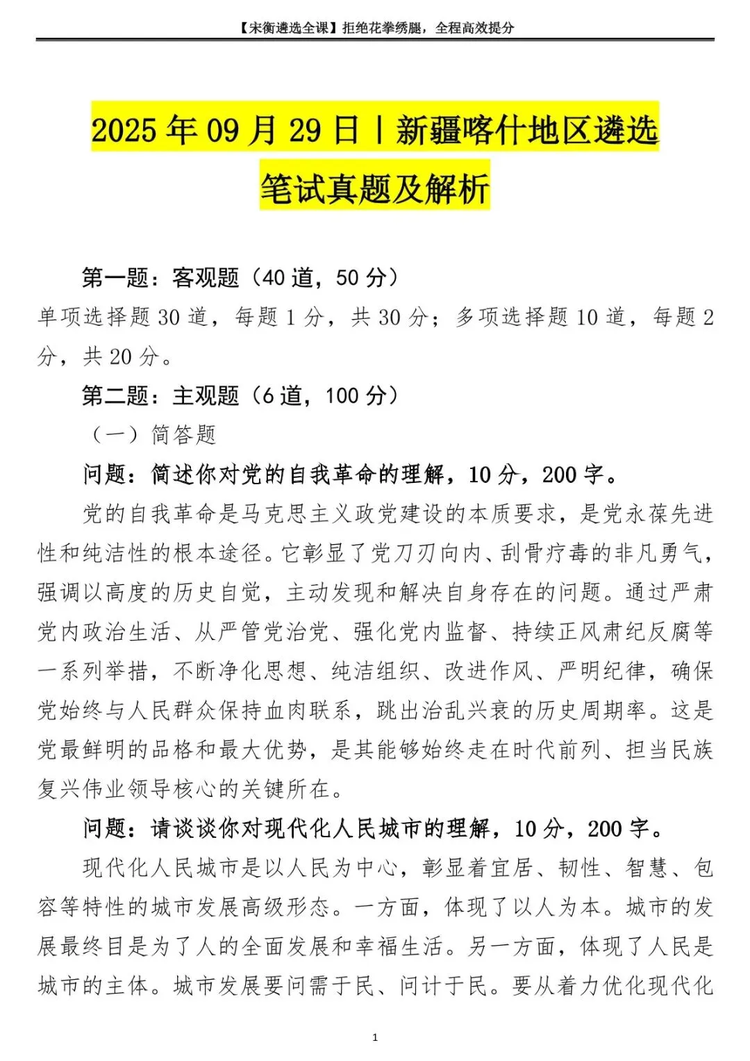 >2025年09月29日|新疆喀什地区遴选笔试真题及解析