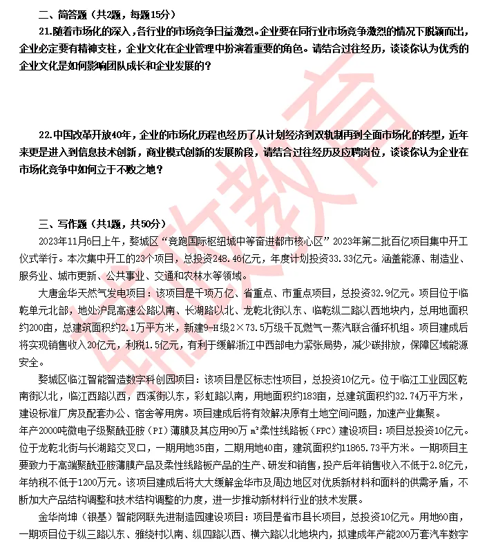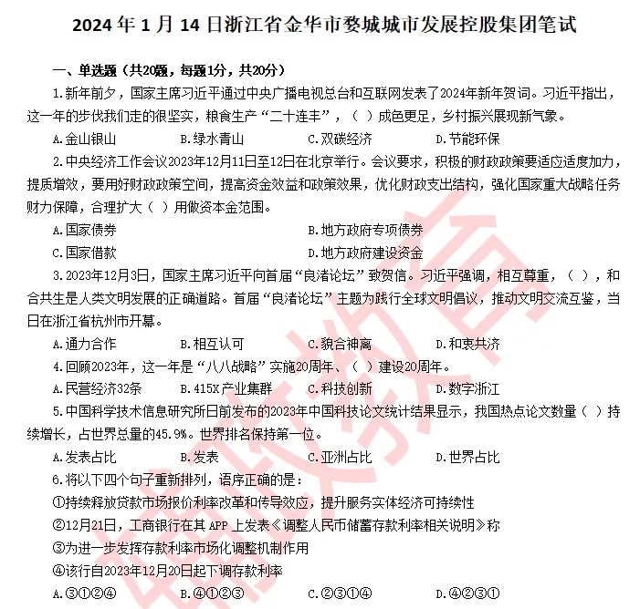 >2024年1月金华婺城城市发展笔试真题(电子版免费)