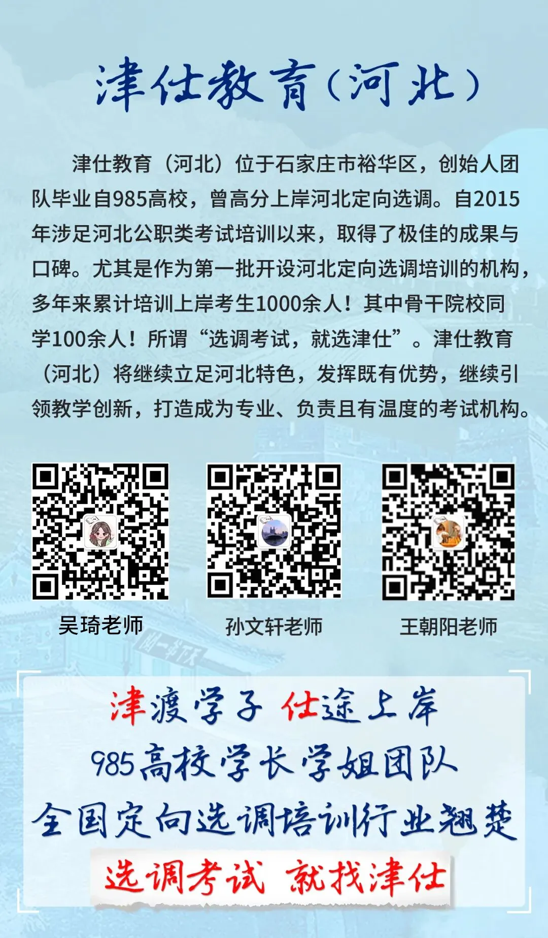为帮助下一届学弟学妹看到最全最真实的2026年河北定向选调真题,津仕教育特推出——“河北定向选调笔试真题回忆征集”活动,诚邀各位同学参加!考有余力的同学可以在考试时记牢自己的真题,结束后发给津仕教育的老师~