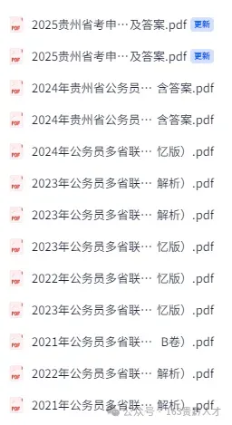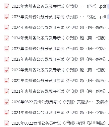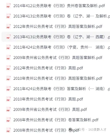 1. 2025年3月15日贵州省考《行测》真题卷及参考答案(完整版).pdf2.2024年3月16日贵州省考《行测》真题卷及参考答案(完整版).pdf3.2023年2月25日贵州省考《行测》真题卷及参考答案(完整版).pdf4.2022年7月09日贵州省考《行测》真题卷及参考答案(完整版).pdf5.2021年3月27日贵州省考《行测》真题卷及参考答案(完整版).pdf6. 2020年8月22日贵州省考《行测》真题卷及参考答案(完整版).pdf注意:申论有的卷子无材料,只有题目和答案,介意者勿领。2021年3月27日贵州省考《申论》真题卷及参考答案(B类).pdf2022年7月09日贵州省考《申论》真题卷及参考答案(A类).pdf2022年7月09日贵州省考《申论》真题卷及参考答案(B类).pdf2023年2月25日贵州省考《申论》真题卷及参考答案(A类).pdf2023年2月25日贵州省考《申论》真题卷及参考答案(B类).pdf2024年3月16日贵州省考《申论》真题卷及参考答案(A类).pdf2023年3月16日贵州省考《申论》真题卷及参考答案(B类).pdf2025年3月15日贵州省考《申论》真题卷及参考答案(A类).pdf2025年3月15日贵州省考《申论》真题卷及参考答案(B类).pdf👇点击下方卡片关注【163贵黔人才】公众号后台回复关键词【省考真题】免费领取贵州历年省考行测+申论真题还可以把它分享给你身边的小伙伴