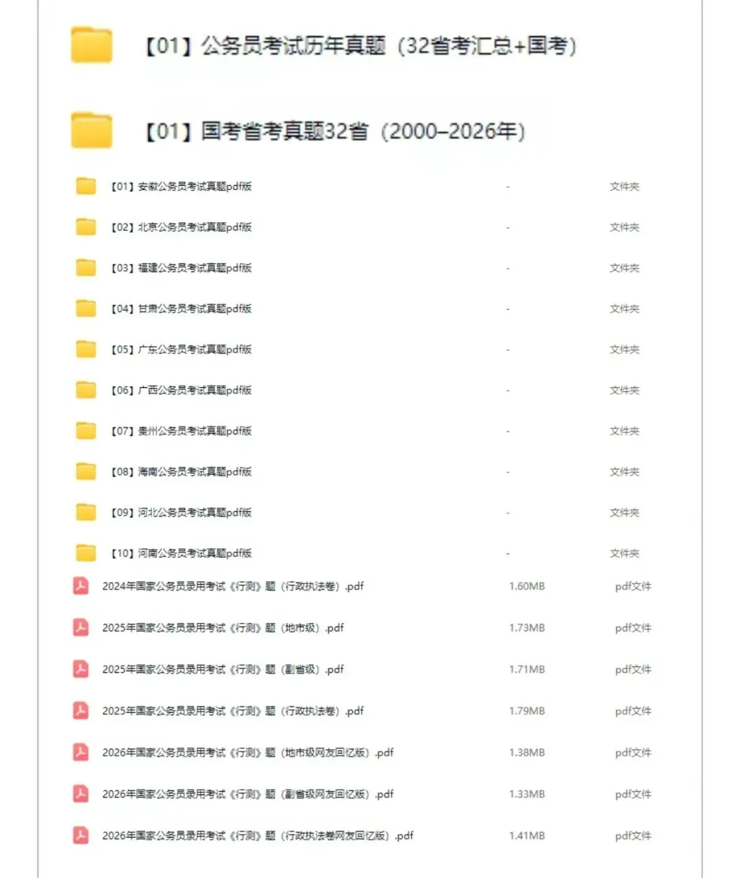 公务员考试历年真题(32省考汇总+国考)