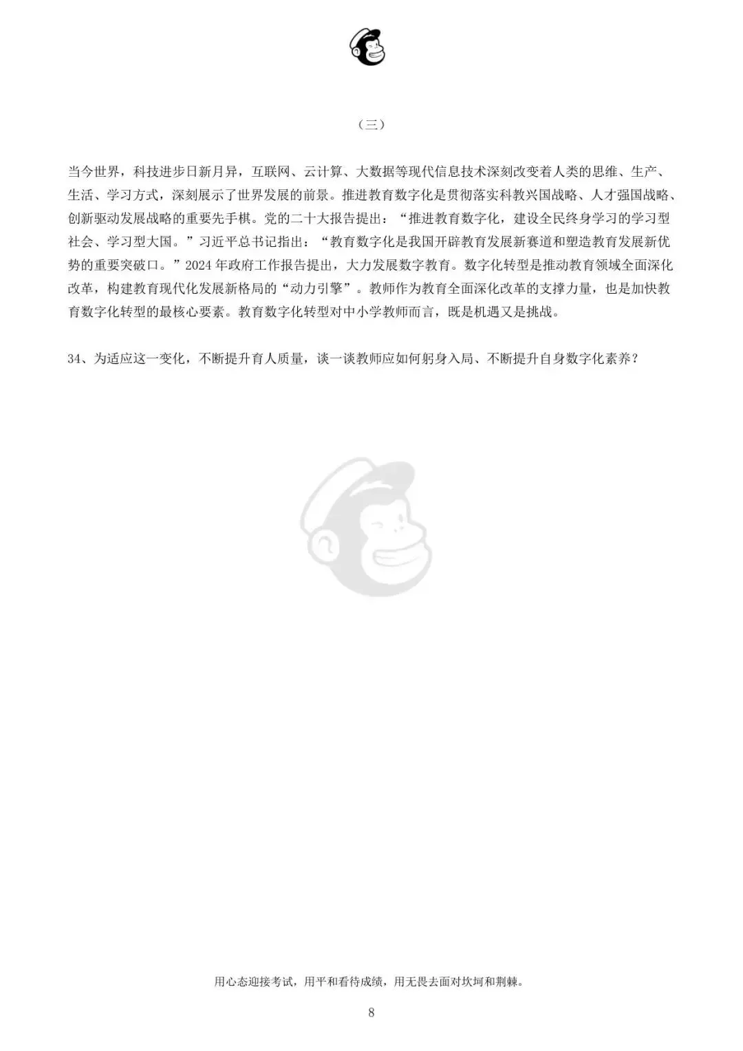 当前位置:首页>招聘真题>2024年5月26日山东省济宁市教师招聘真题