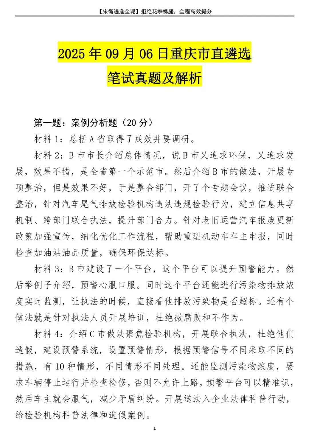 >2025年09月06日重庆市直遴选笔试真题及解析