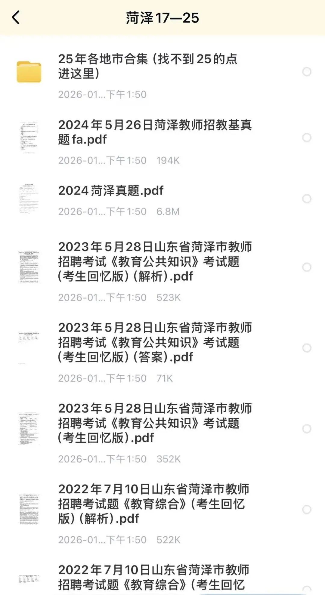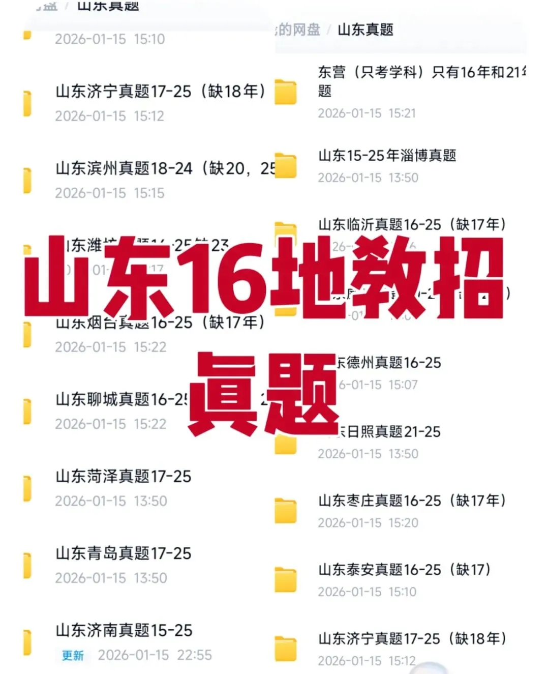 >26山东,教师招聘历年真题,考生回忆版(16个地区)