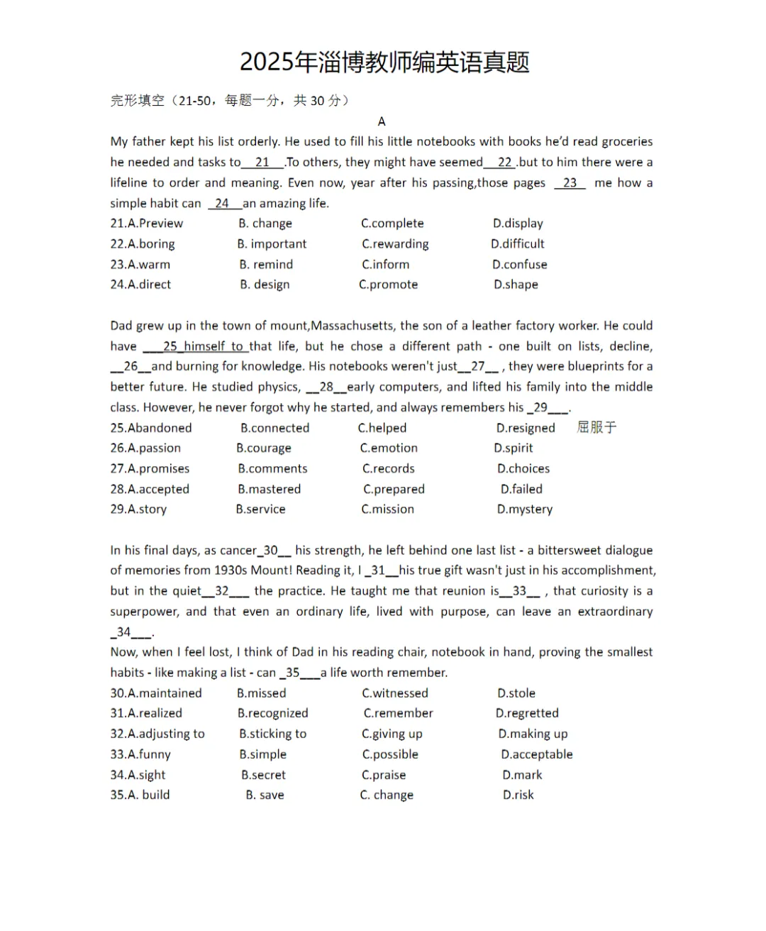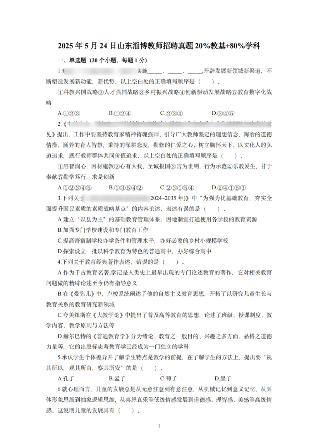 >2026淄博教师招聘历年真题(教基+语数英音体美)