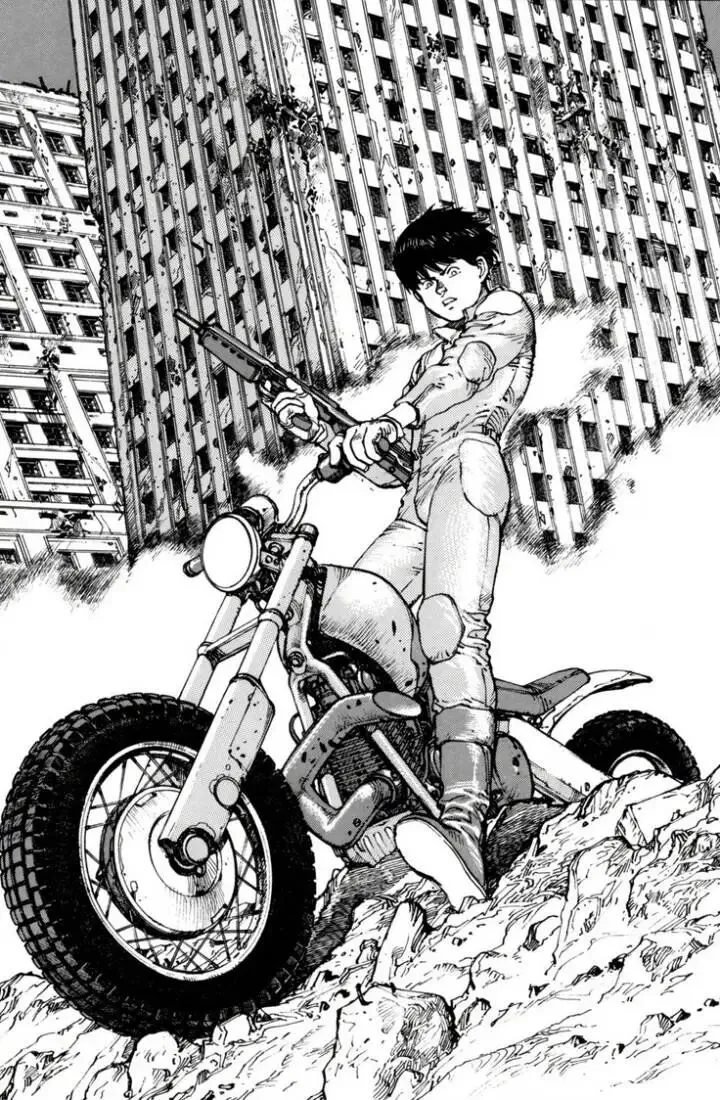 大友克洋是一位多才多艺的艺术家,既是漫画家又是动画导演,他的作品在日本动漫界有着深远的影响。1986年,执导个人首部动画电影《迷宫物语》,从而正式开启了他的导演生涯。大友克洋的漫画作品以写实主义风格著称,虽因动画电影出名,但不可否认的是,大友克洋首先是一位杰出的漫画家,比起手冢治虫卡通化的漫画风格,大友克洋更偏向写实主义。上图漫画即出自大友克洋《阿基拉》漫画集。