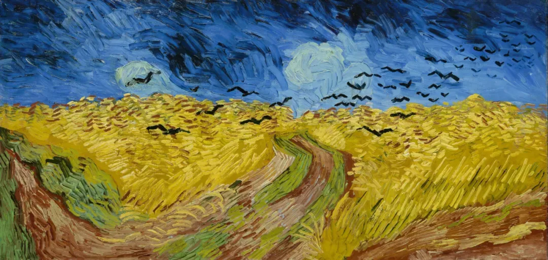 文森特·梵高的《麦田群鸦》是一幅充满悲情与孤独的油画,创作于1890年7月,现珍藏于阿姆斯特丹梵高博物馆。画面中,风吹过的麦田占据了画布的三分之二,成片的麦穗给人一种幽闭的感觉。暗蓝色的天空中,涡形暴风雨临近,增强了画面的孤立感。中央的小路和乌鸦的不确定飞行方向,更加强调了这种孤独和迷茫。梵高通过乌鸦这一象征性元素,表达了死亡、重生或复活的寓意。