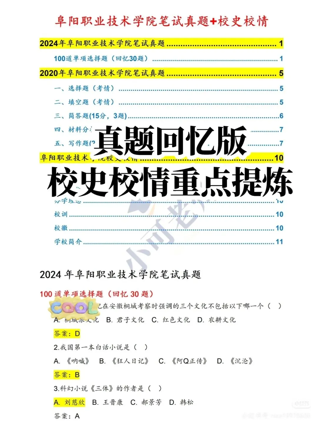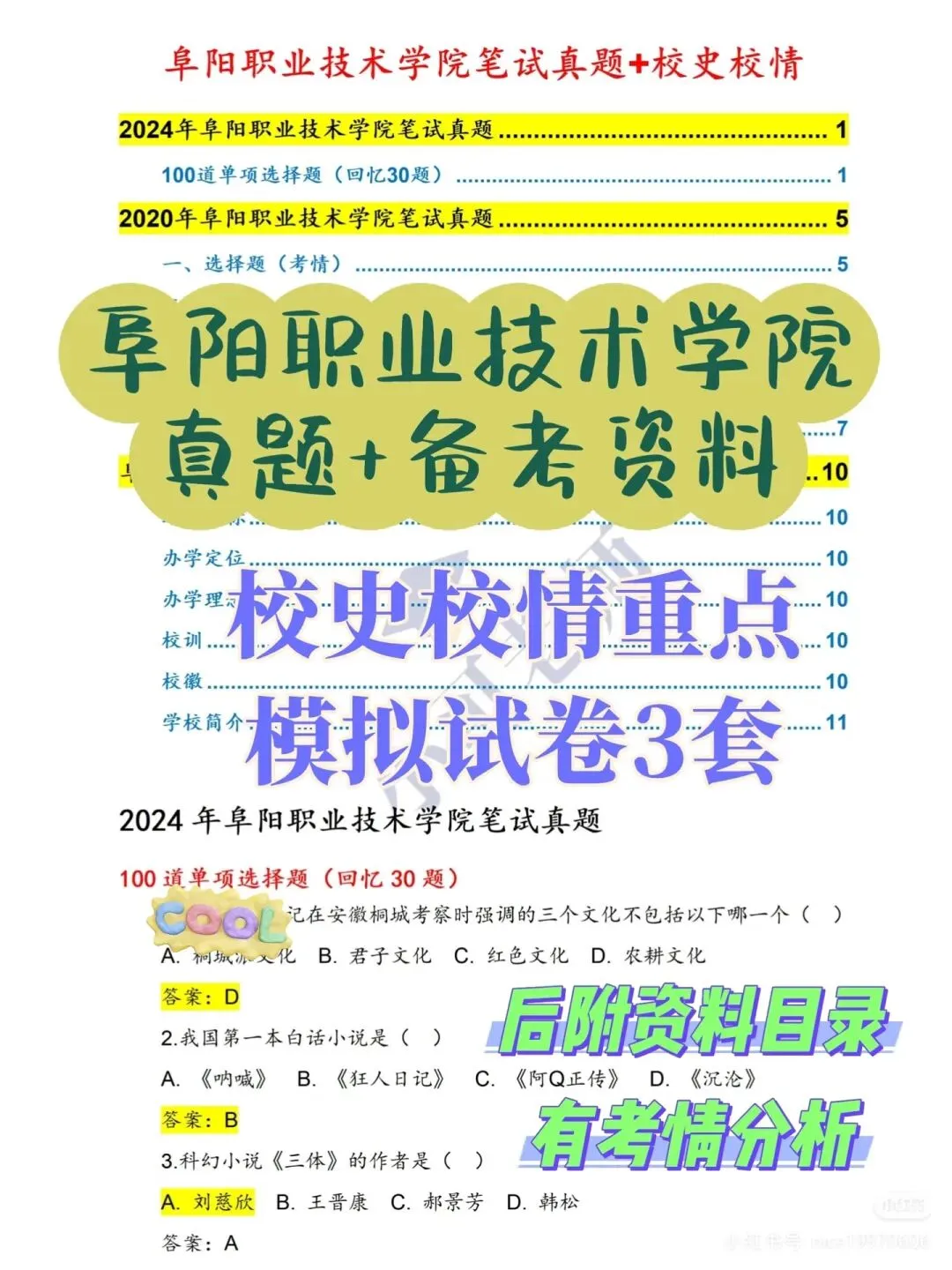 7️⃣阜阳职业技术学院真题汇总+校史校情