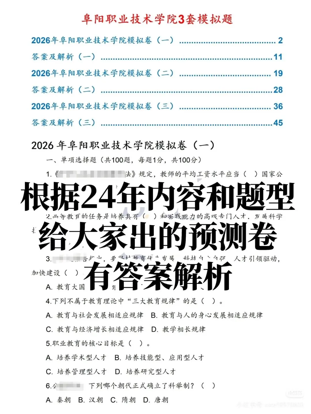 8️⃣阜阳职业技术学院三套模拟题