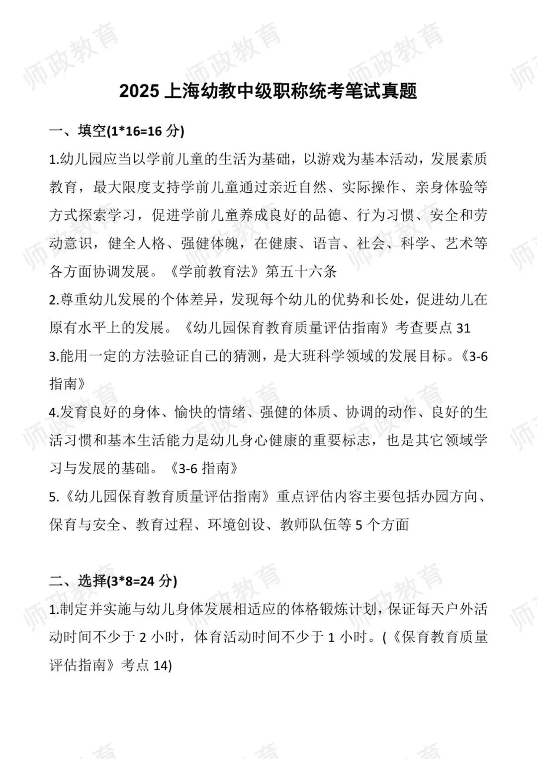2025上海幼教中级职称统考笔试真题