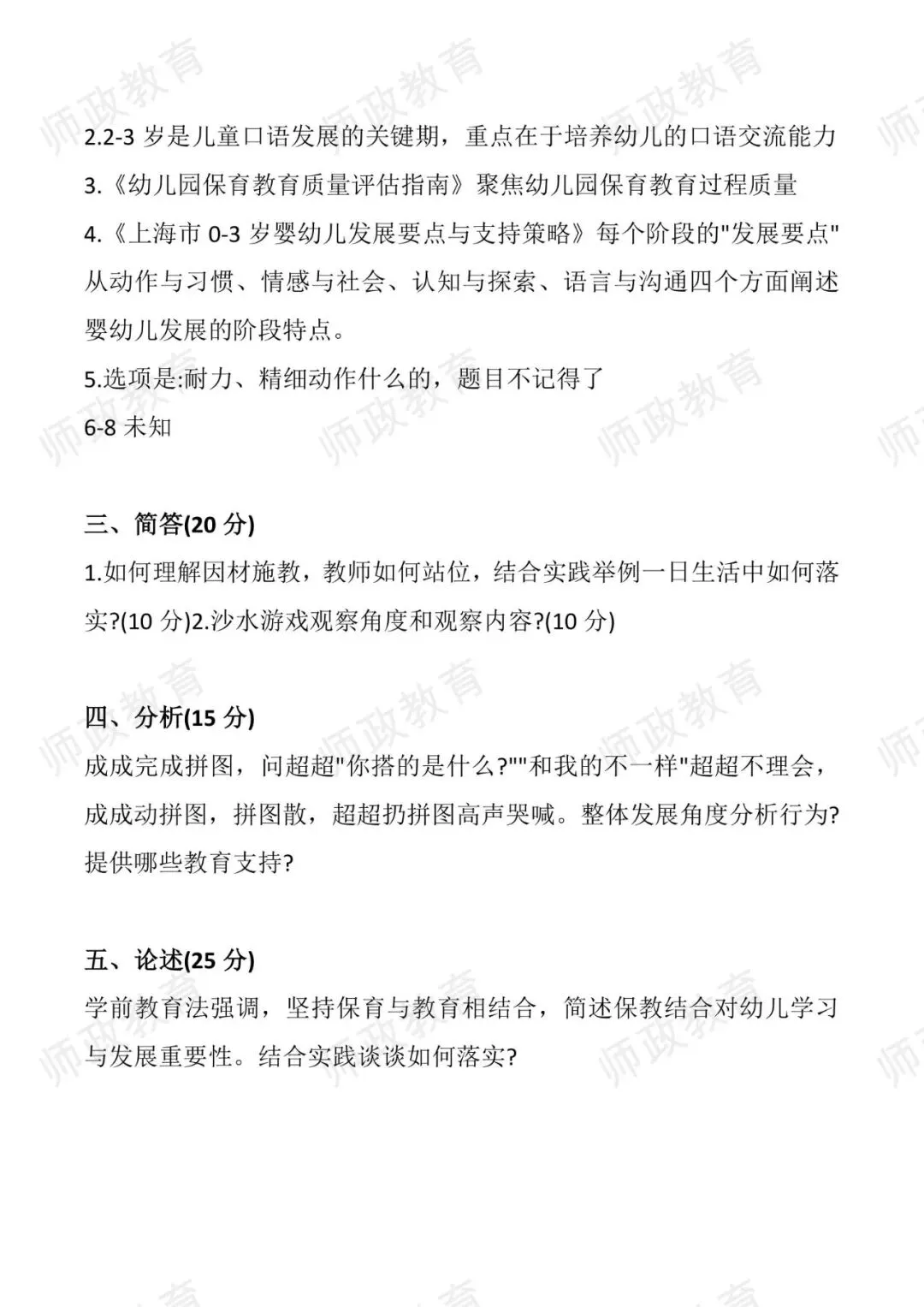 >2025上海幼教中级职称统考笔试真题