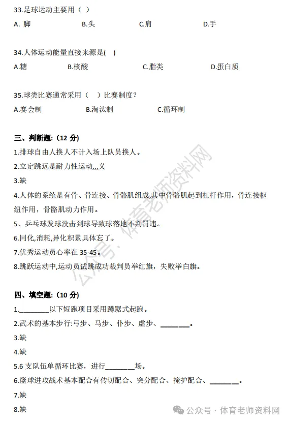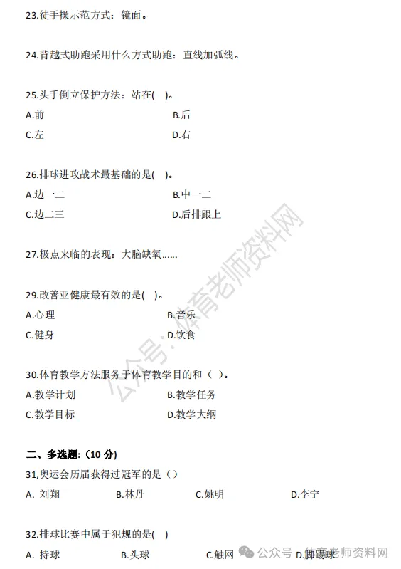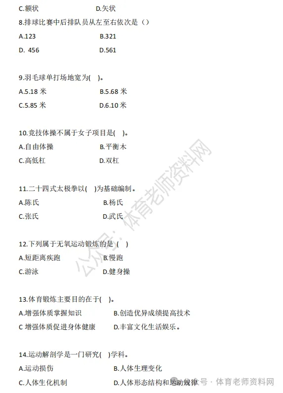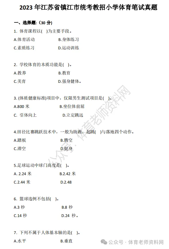 >【考编真题】江苏省镇江市统考教招体育笔试真题