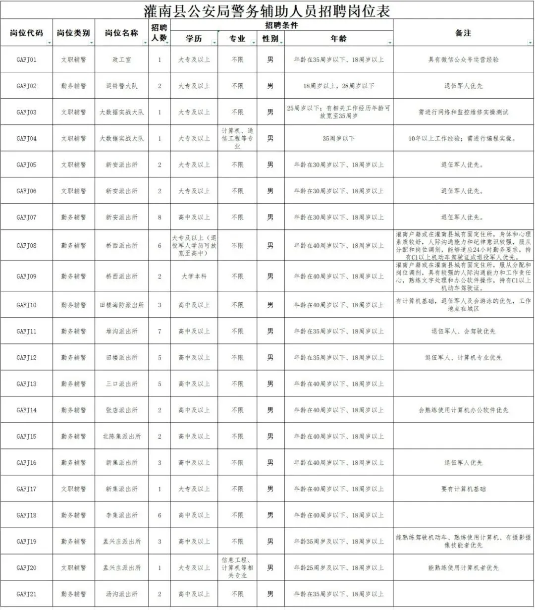 因工作需要,根据《江苏省公安机关警务辅助人员管理条例》、《江苏省公安机关警务辅助人员招聘办法》、《灌南县公安机关警务辅助人员管理办法》等相关文件规定,灌南县公安局决定面向社会公开招聘65名警务辅助人员,有关事项公告如下: